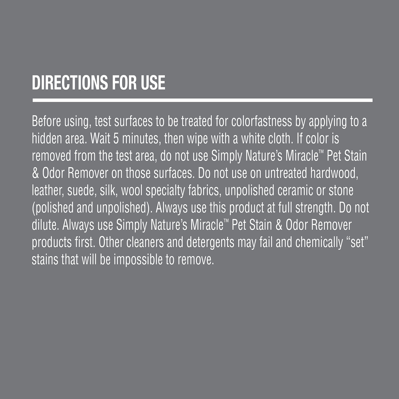 Natures Miracle Pet Stain And Odor Removers Have Been A Trusted Brand For Pet Mess Cleanup For 40 Years. Natures Miracle Stain And Odor Removers, Virus Disinfectants, Training Aids, Litter And Waste Management And Grooming Products Offer Solutions For Life With Pets, From Everyday Messes To The Toughest Cleanup Jobs. Simply Natures Miracle Products, Our Newest Lineup Of Cleaning Solutions, Features Formulas Made With 86% Plant-Based Surfactants And Fragrances Made With Essential Oils That Mindful Consumers Can Feel Good About Using In Their Homes. Simply Natures Miracle Pet Stain And Odor Remover Is Made Without Parabens, Phthalates, Phosphates Or Added Dyes. The Bio-Enzymatic Formula Is Tough On Pet Messes, Such As Urine, Feces, Vomit, Drool And Other Organic Stains And Odors, But Not On Your Floor, Carpet Or Furniture*. Plus, The Odor Capture 360 Formula Controls Pet Odors And Freshens With Essential Oils For A Pleasant Scent. Simply Natures Miracle Pet Stain And Odor Remover Is Safe For Pets And Home When Used And Stored As Directed. Even Better, Our Bottle Is Made With 25% Post-Consumer Recycled Material. *When Used And Stored As Directed.