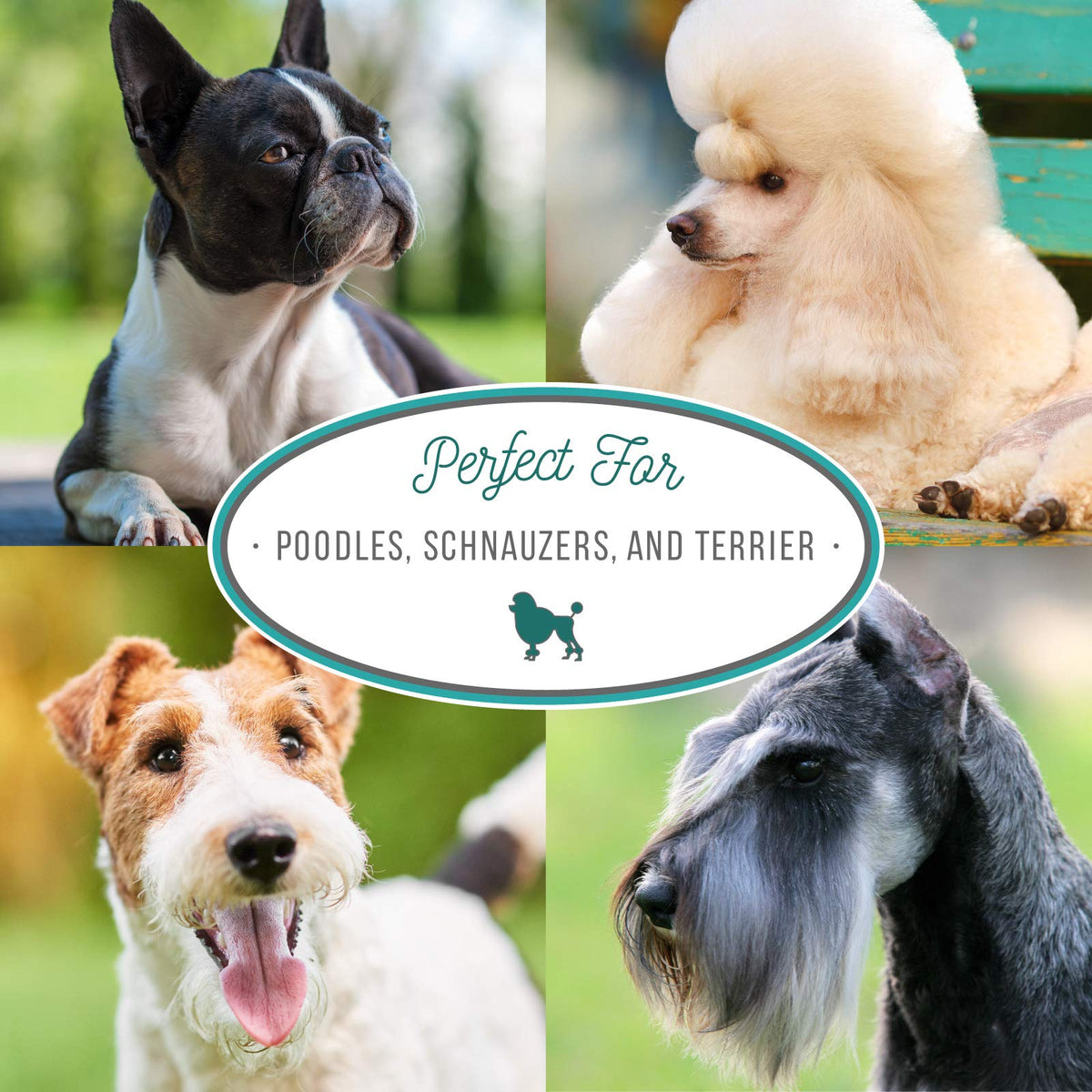 Q: Is this shampoo safe for all dog breeds?A: Yes, Nature's Specialties Almond Crisp Dog Shampoo is suitable for all dog breeds, particularly effective for Poodles, Schnauzers, and Terriers. Its non-toxic and biodegradable formula makes it a safe choice for all pets.
