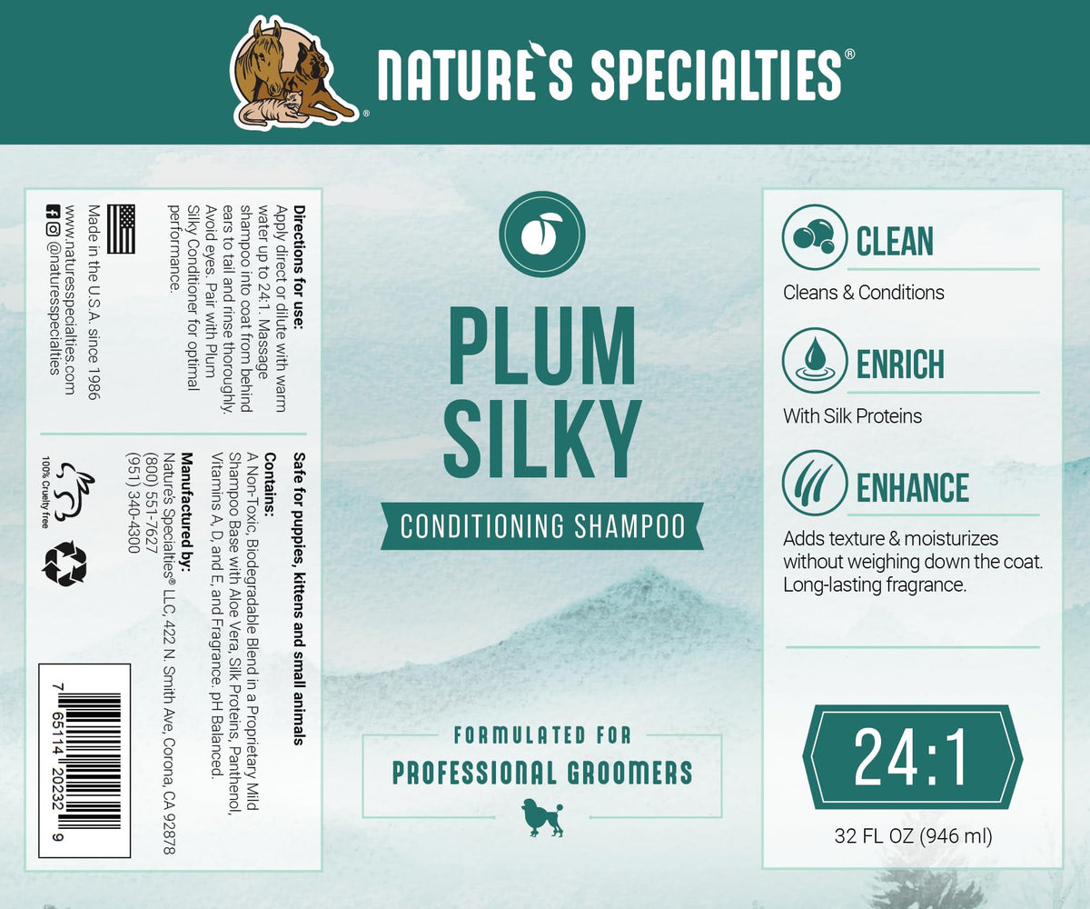 Nature'S Specialties Plum Silky Ultra Concentrated Dog Shampoo Conditioner, Makes Up To 6 Gallons, Natural Choice For Professional Pet Groomers, Silk Proteins, Made In Usa, 32 Oz