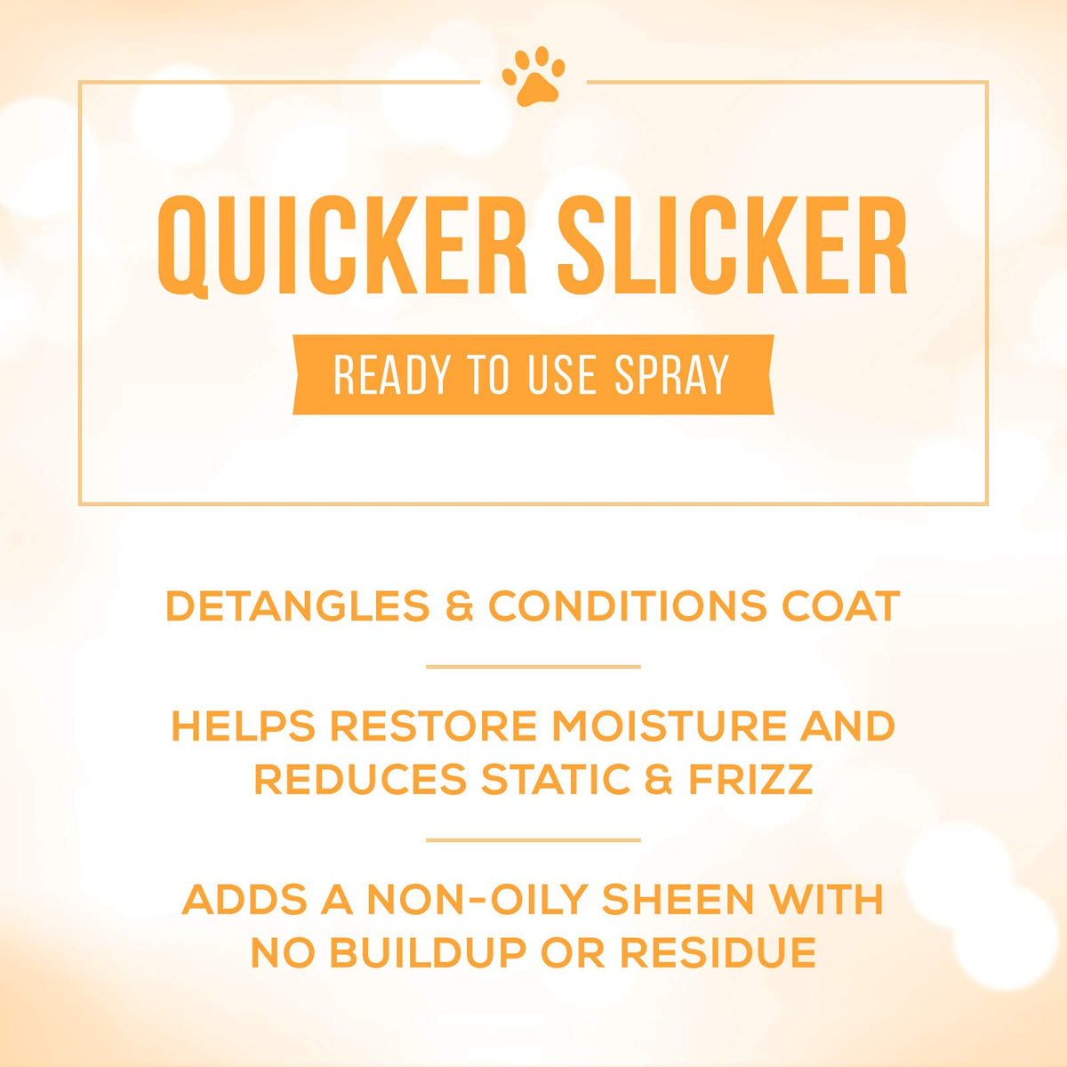 Q: What is Nature's Specialties Quicker Slicker used for?A: Nature's Specialties Quicker Slicker is a detangling and conditioning spray designed to make brushing and dematting your pet's coat easier, while also restoring moisture and leaving a silky finish.