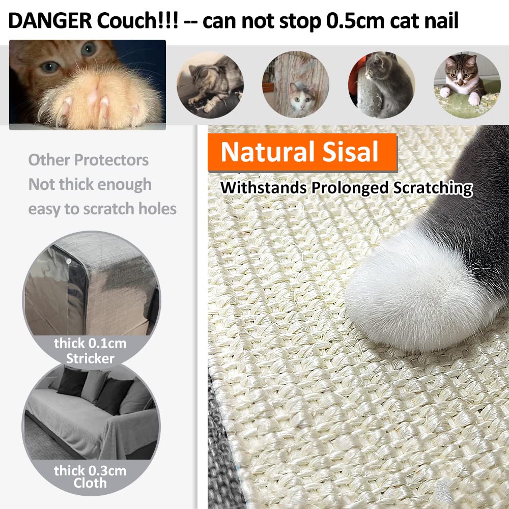 Natuya Furniture Protectors From Cats-Cat Couch Protector Large Sisal Cat Scratching Mat-Protect Sofa Corner Cushion Chair (Sisa