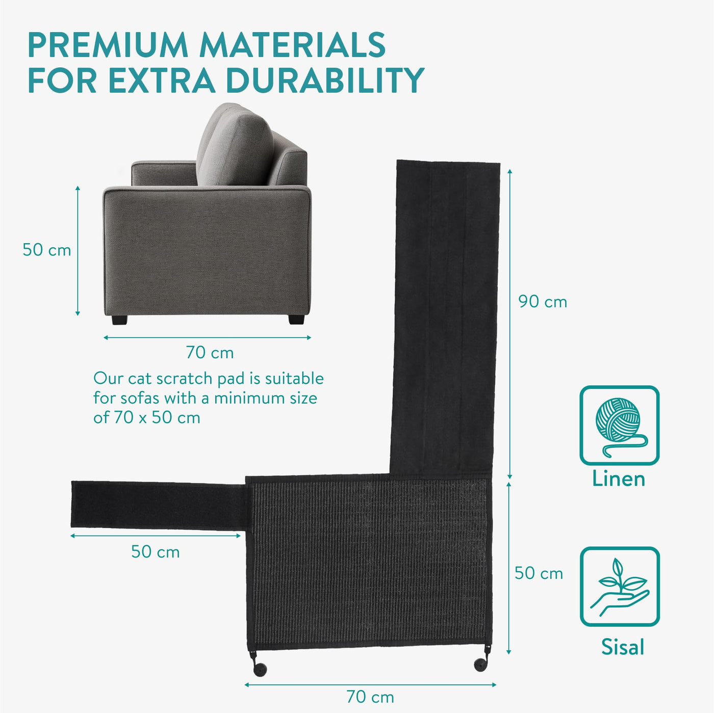 Protect Your Upholstered Furniture And Create A Satisfying Scratch Session For Your Cat At The Same Time! Keep Both You And Your Furry Ones Happy At Home By Creating An Inviting Environment For Everyone.Scratchtasticcats Caring For Their Claws Is Completely Natural. Cats Need Scratch Mats So That Walls, Furniture, Doors And Floors Do Not Get Damaged From Their Need To Scratch. As It Is Impossible To Stop Cats From Scratching, The Sofa Protector Will Deter Your Cat From Scratching And Ruining Your Furniture, Rugs And Carpets.Cat Manicureplace The Scratch Mat On The Left Side Of Your Sofa Or Couch. The Tough Sisal Material Has The Advantage Of Corrosion Resistance And Pressure Resistance, So Your Cat Will Enjoy Its Scratching Session Even More.Notebefore Purchasing, Please Check Whether The Sisal Scratch Mat Is Suitable For Your Furniture.Specificationsmaterial: Sisal, Linendimensions: 19.7' X 27.6' / 50 X 70 Cmcolor: Blackscope Of Delivery1X Scratch Mat (Right)