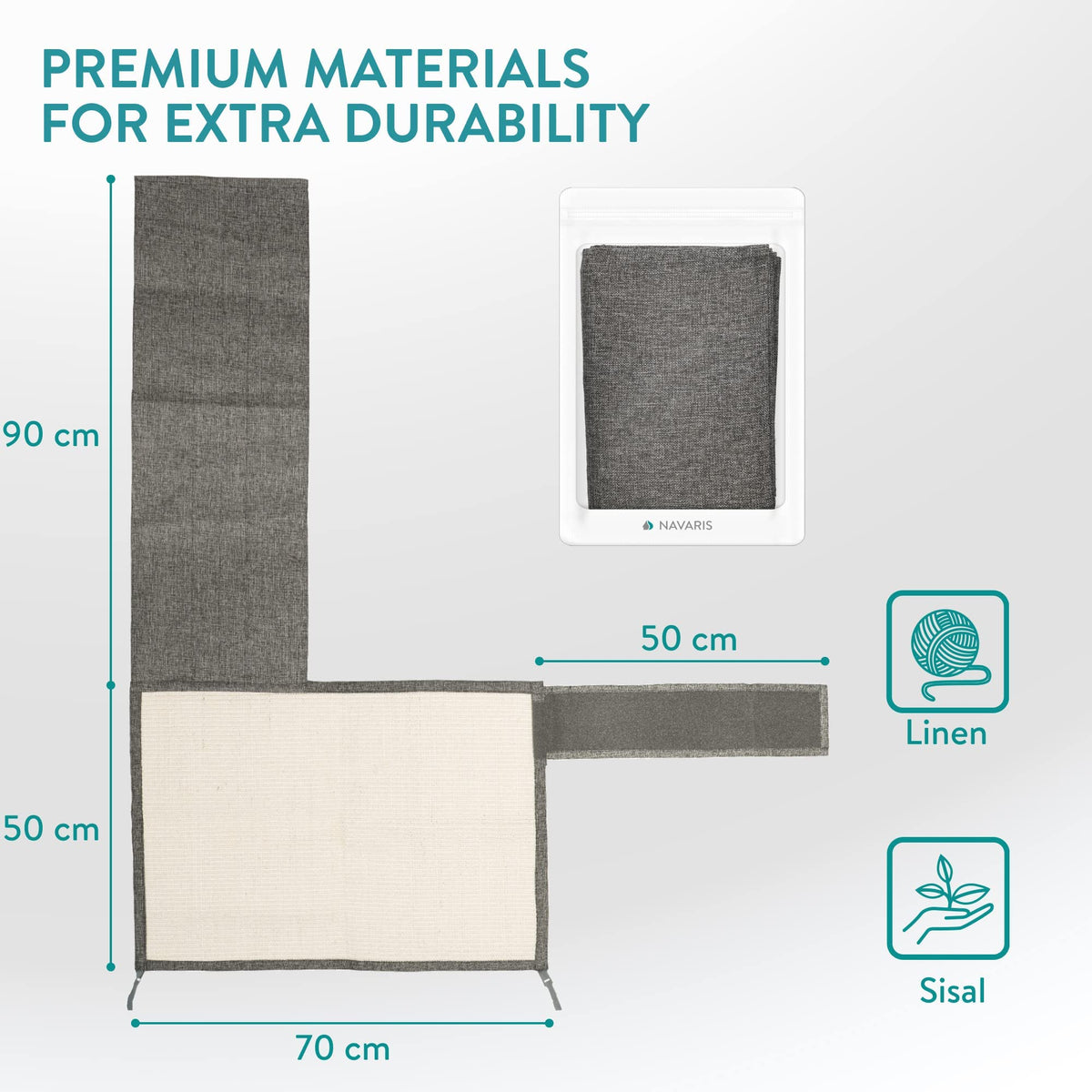 Q: Is the material of the scratch mat safe for my cat?A: Yes, the Navaris Cat Scratch Mat is made from natural sisal and linen, which are both eco-friendly and non-toxic materials. This ensures a safe scratching experience for your cat while being durable for long-term use.