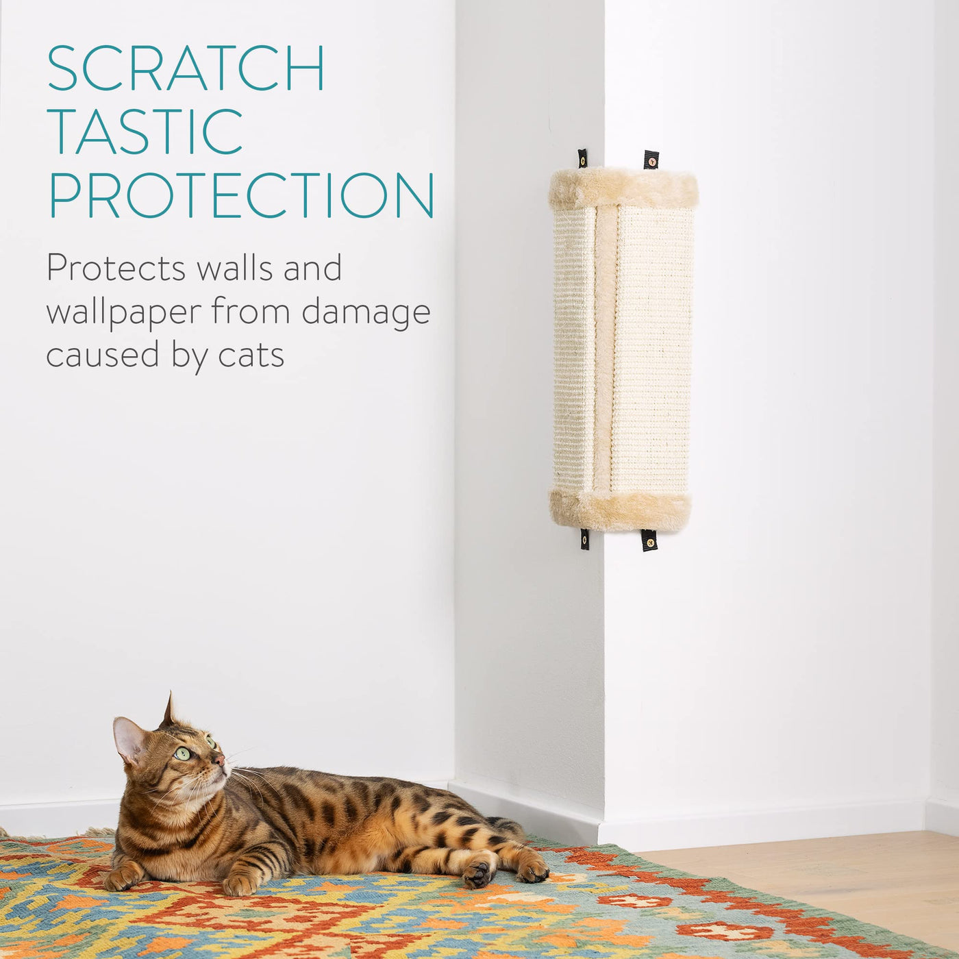 Are Your Cats Scratching Your Furniture, Carpet Or Walls And You Want Them To Stop? Give Them Something Even Better To Scratch With A Wall Corner Scratcher For A Satisfying Vertical Scratch Session.4 Installation Strapseach Scratcher Features 2 Nylon Straps On The Top And 2 On The Bottom, So That The Panel Can Be Securely Installed. The Corner Scratcher Won'T Swing Or Move Even With The Most Enthusiastic Scratching Sessions.Protects Wallssome Cats Love To Scratch And Rub Up Again Wall Corners. Save Your Walls From Damage With One Of Our Corner Installed Scratchers, Especially If You'Ve Got Wallpaper To Protect. Prevent Pets From Wearing Down Your Home, Whether You Own Or Rent.Set Of 2Delivery Includes Two Cat Scratchers, So They Can Be Mounted In Separate Areas Of The Home. Alternatively, Keep One As A Backup For When The First One Eventually Wears Out.Specificationssize Of Each Scratcher: 16.9'' X 8.7'' X 0.8'' (43 Cm X 22 Cm X 2 Cm)Weight Of Each Scratcher: 1.8 Lbs. (0.82 Kg)Materials: Sisal, Polyester Plushscope Of Delivery2X Cat Scratchers8X Nails8X Wall Plugs