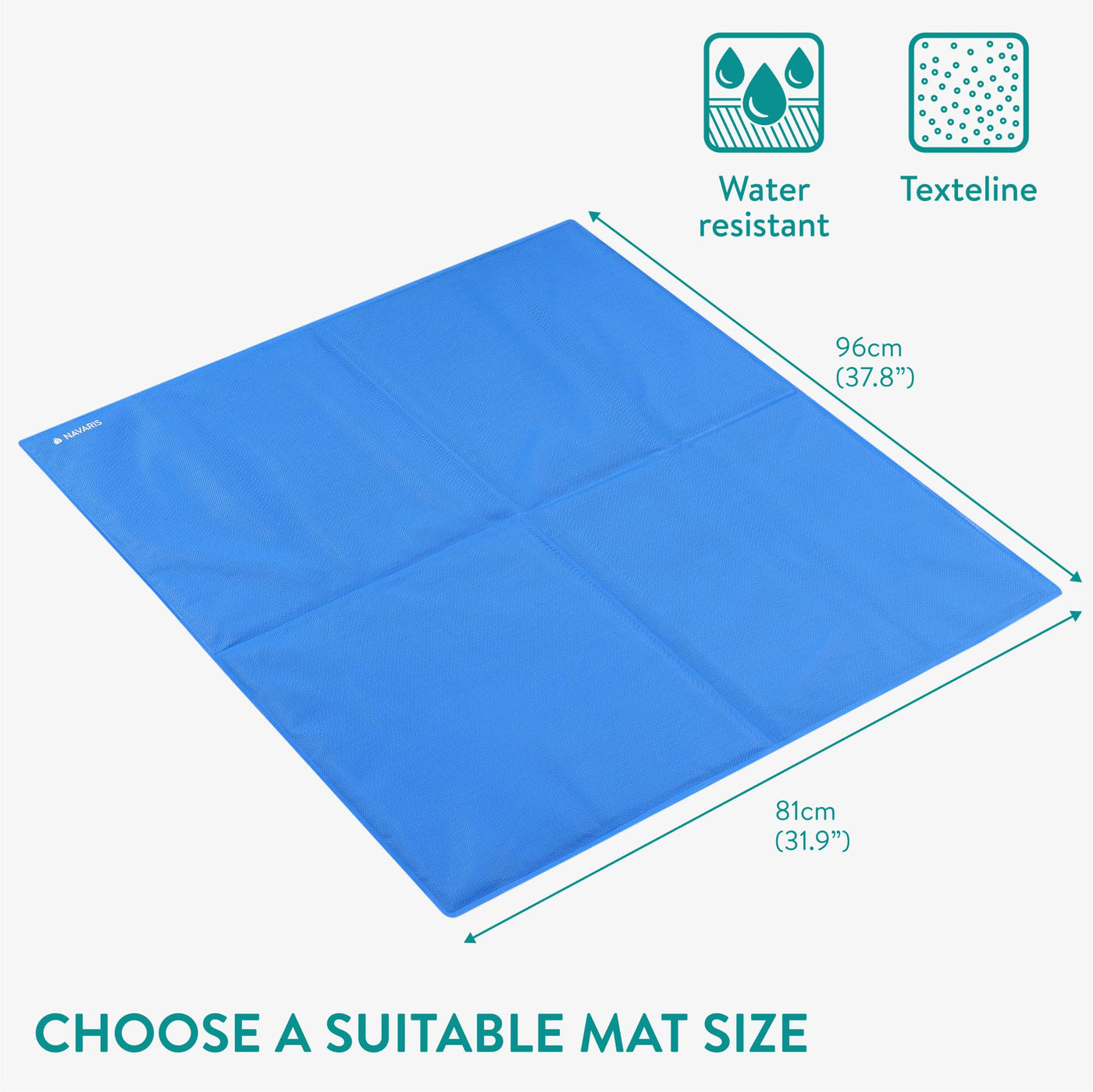 Help Your Pet Beat The Heatlooking For The Perfect Cold Dog Mat To Keep Your Pet Cool? Our Gel Pet Cooling Mat Is Here To Provide Your Pet Comfort From Warm Weather. No More Leak Concerns-Our Dog Self Cooling Mat Has A Solid Gel Design And Strong Textiline Cover To Inhibit Chewing. Experience Enhanced Durability With Robust Seams, Ensuring A Reliable And Lasting Cooling Solution For Even The Most Active Pets. The Thick Construction Of The Mat Provides Extended Cooling Relief, Making It Ideal For Warm Climates Or Pets With Thick Fur. Choose The Perfect Fit From Our Variety Of Sizes, Ensuring Tailored Luxury For Every Pet. The Double-Sided Cool Innovation Offers Versatility, Allowing You To Flip For Extended Use And A Consistently Cool Surface.Avoid Sharp Objects And Prevent Chewing. If Damaged, Discontinue Use For Your Pet'S Safety And Comfort.Highlights:Leak-Proof Gel Designrobust Seam Durabilityextended Cooling Reliefversatile Double-Sided Innovationspecificationsmeasurements: 31.89' X 37.80' X 0.20' (81 X 96 X 0.5 Cm)Materials: Textilene Fabric, Waterproduct Info1 X Cooling Mat
