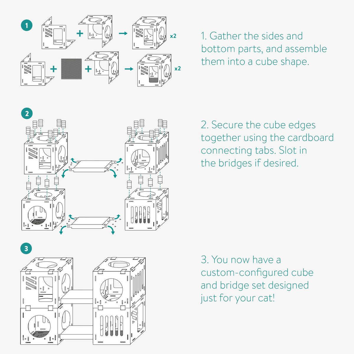 Put Together The Ideal Structure For Your Pet With A Modular Cardboard Cat House By Navaris. Your Cat Will Love To Explore, Nap, Perch And Lounge In And On This Unique Corrugated Cardboard Play House.Easy Assemblythe Delivery Includes All The Pieces And Connectors You Need To Easily Put Together Your Desired Combination. Stack The Cubes Into A Tower, Join Them With A Bridge, Or Create A Longer Cat Tunnel On The Ground.Modular Cubeseach Cube Measures 12'' X 12'' X 12'' (30.5Cm X 30.5Cm X 30.5Cm), Making The Cubes Suited For Smaller Cats, Kittens Or Small Animals Like Bunny Rabbits.Stable And Lightweightonce Assembled, The Cardboard Is Very Sturdy And Will Withstand Pets Playing, Running And Jumping On The Structure. Because It'S Made Of Cardboard, It'S Also Light Enough To Move Around If Need Be.Specificationsdimensions Of Each Cube: 12'' X 12'' X 12'' (30.5Cm X 30.5Cm X 30.5Cm)Dimensions Of Each Scratch Board: 11.5'' X 11.5'' X 1'' (29.5Cm X 29.5Cm X 2.5Cm) Weight: 4.8 Lbs (2.2 Kg)Material: Corrugated Cardboardscope Of Delivery4X Cubes2X Scratcher Boards2X Bridges1X Connector Set