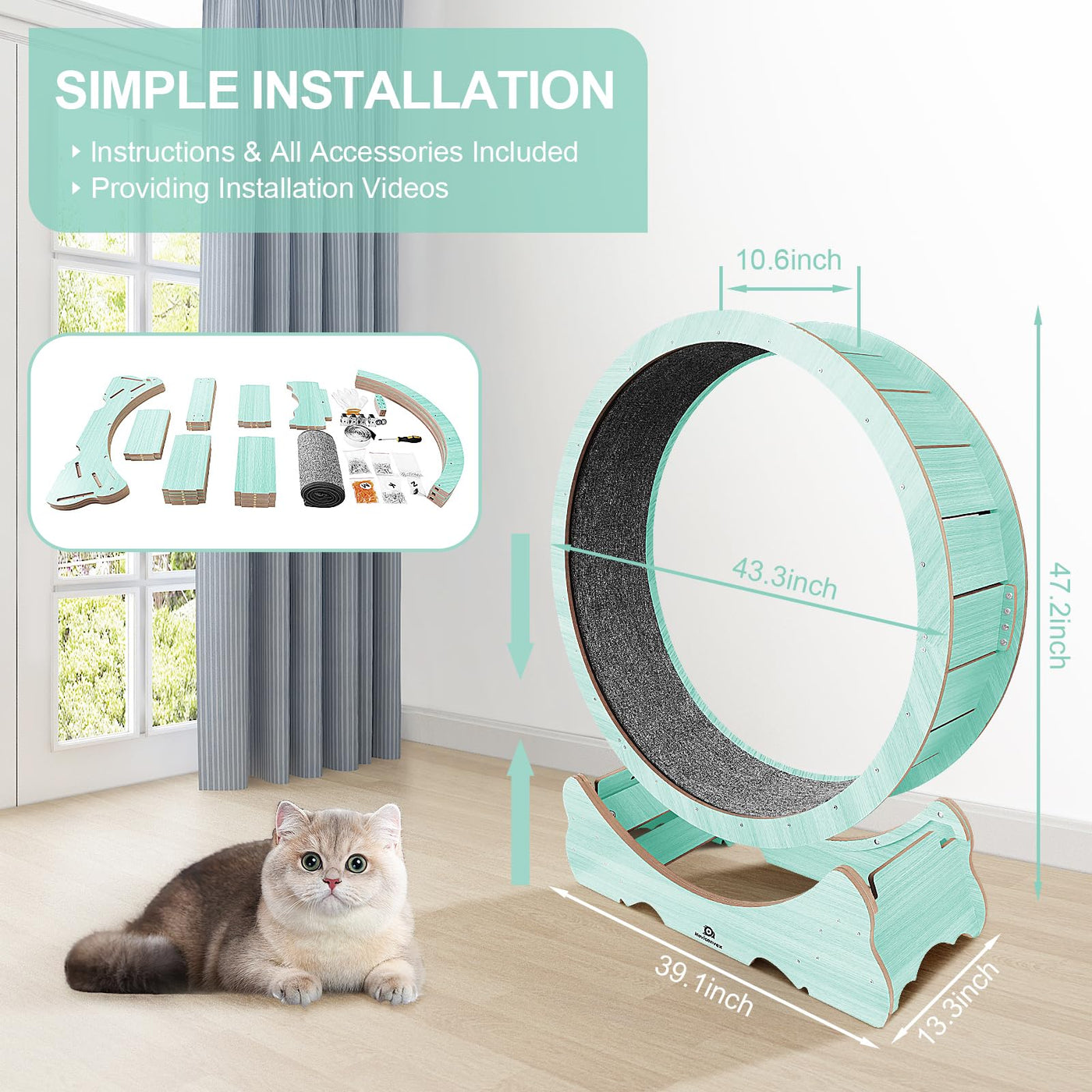 Naviconvex Cat Wheel, 47 Xl Large Cats Exercise Running Wheel, Cat Treadmill For Indoor Cats, Green