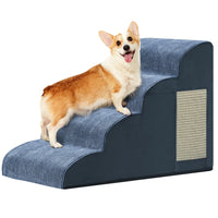 Navy Portable Pet Steps - 4-Step Dog & Cat Ramp For Bed, Couch, Sofa & Chairs - Non-Slip, High Density Foam