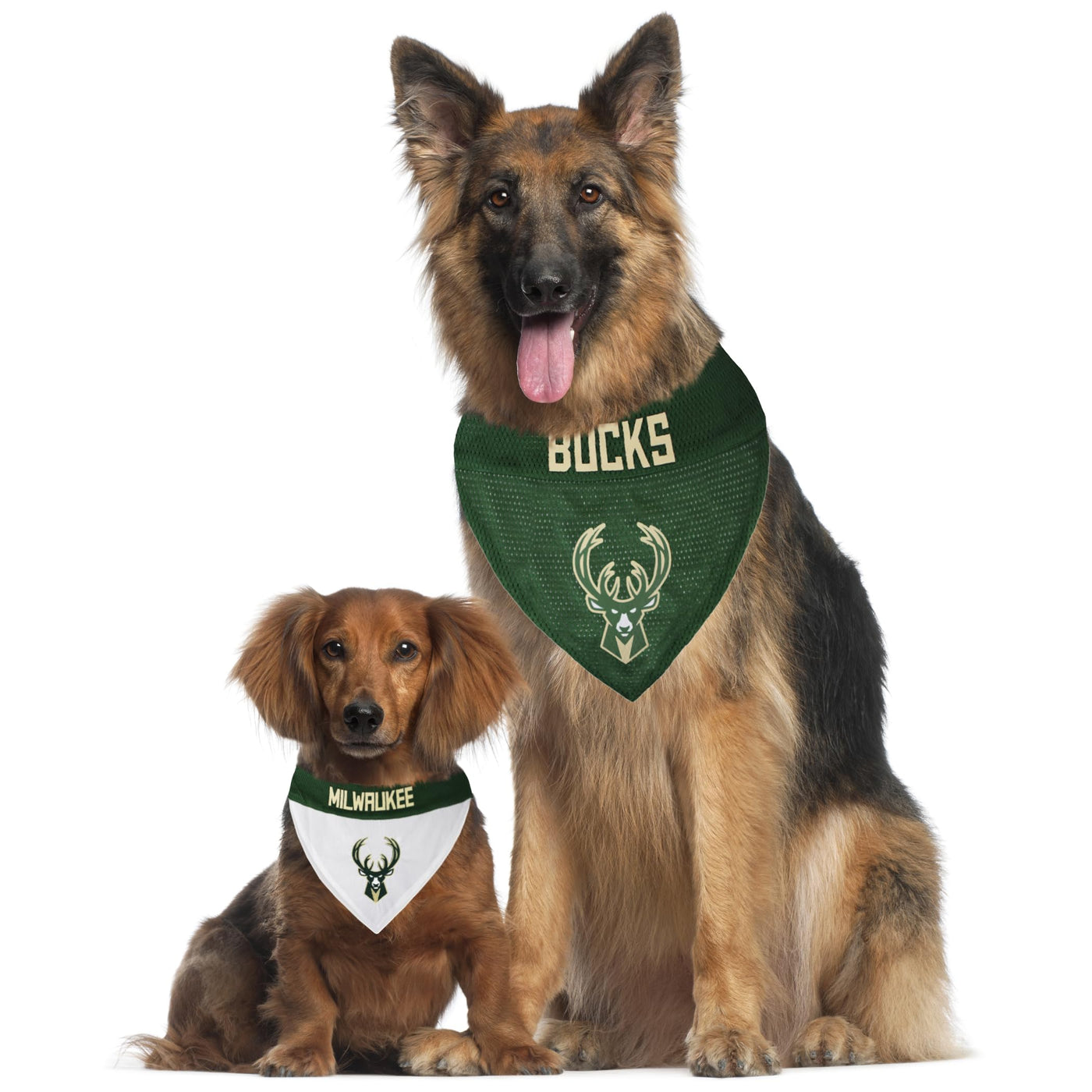 Nba Dog Bandana - Milwaukee Bucks Reversible Pet Bandana. 2 Sided Home & Away Sports Bandana With A Premium Embroidery Team Logo