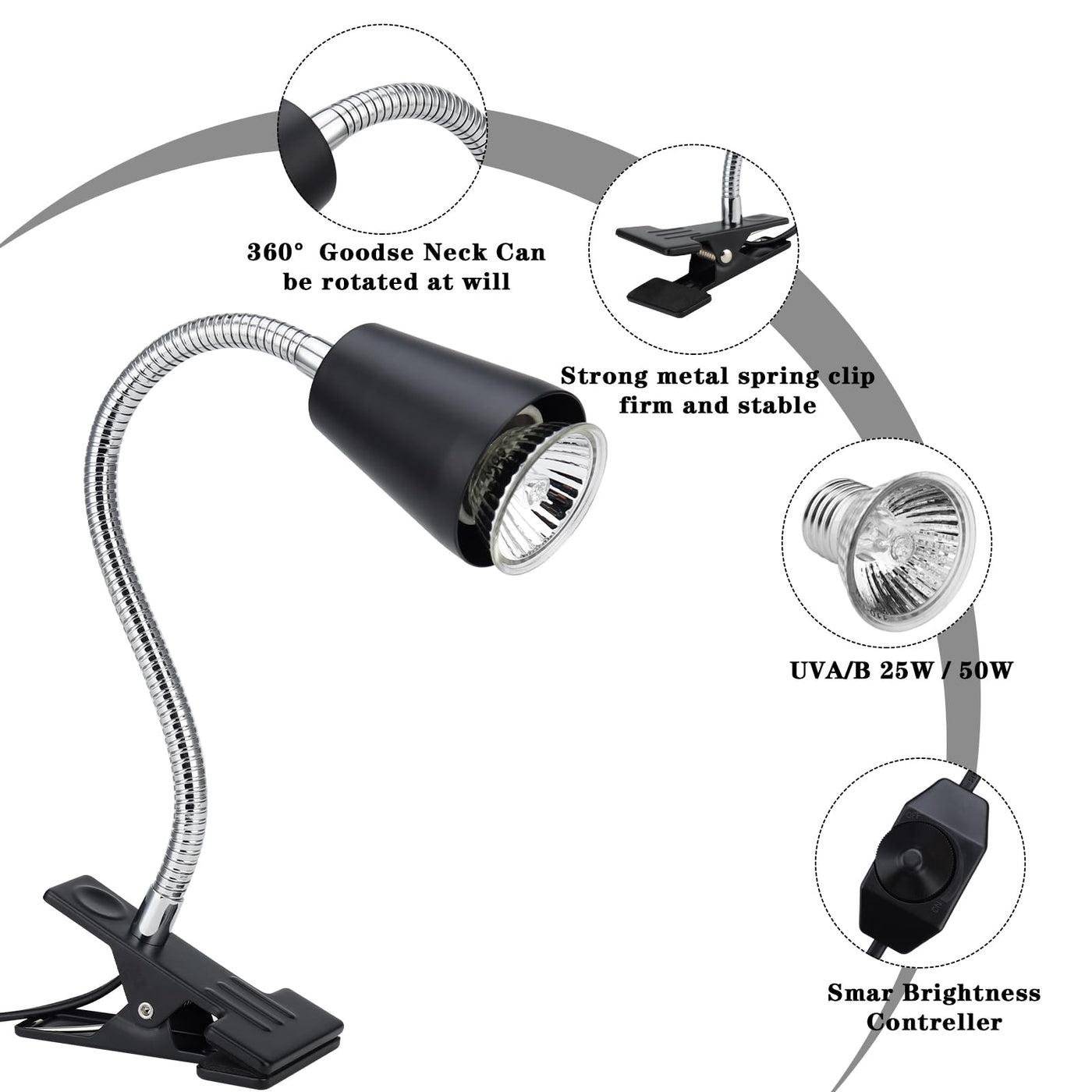 NBIIUYIGE Reptile Heat Lamp,Heat Lamp with Clamp,UVA/UVB Reptile Light,360 Rotatable Clip, Turtle Heat Lamp for Reptiles Bearded