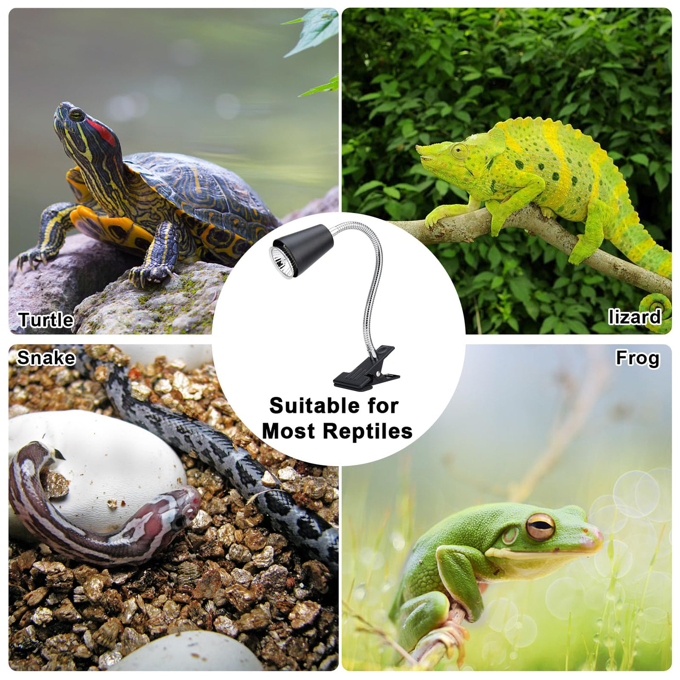 This Reptile Heat Lamp is the perfect solution for keeping your pet reptiles warm and comfortable! Producing both visible light and UVA rays, this lamp uses a special heat lamp bulb designed specifically for reptiles, making it ideal for keeping them warm and healthy. The adjustable stand allows you to easily adjust the height and angle of your lamp, and the UVB reptile light creates an ideal lighting effect for your pet. The heat lamp bulb is designed to last for up to 6 months, and provides the perfect amount of heat and UVB light for your reptiles health. With this lamp, your reptile can bask in the warmth and enjoy the special lighting effect of the UVB reptile light. ?Specification? Working voltage: 110V Power: 25-50W Colour: Black Material: ceramic (bulb), stainless steel (tubular) Power plug: American plug/E27 Lamp power: 50W Support maximum power:100W Lamp size: 5*5*5cm Packing size: 7.9 * 5.5 * 3.2 inch Package Weight:550 g/19.5 oz Packing list: 1* light stand & 1*25W bulb&1*50W bulb