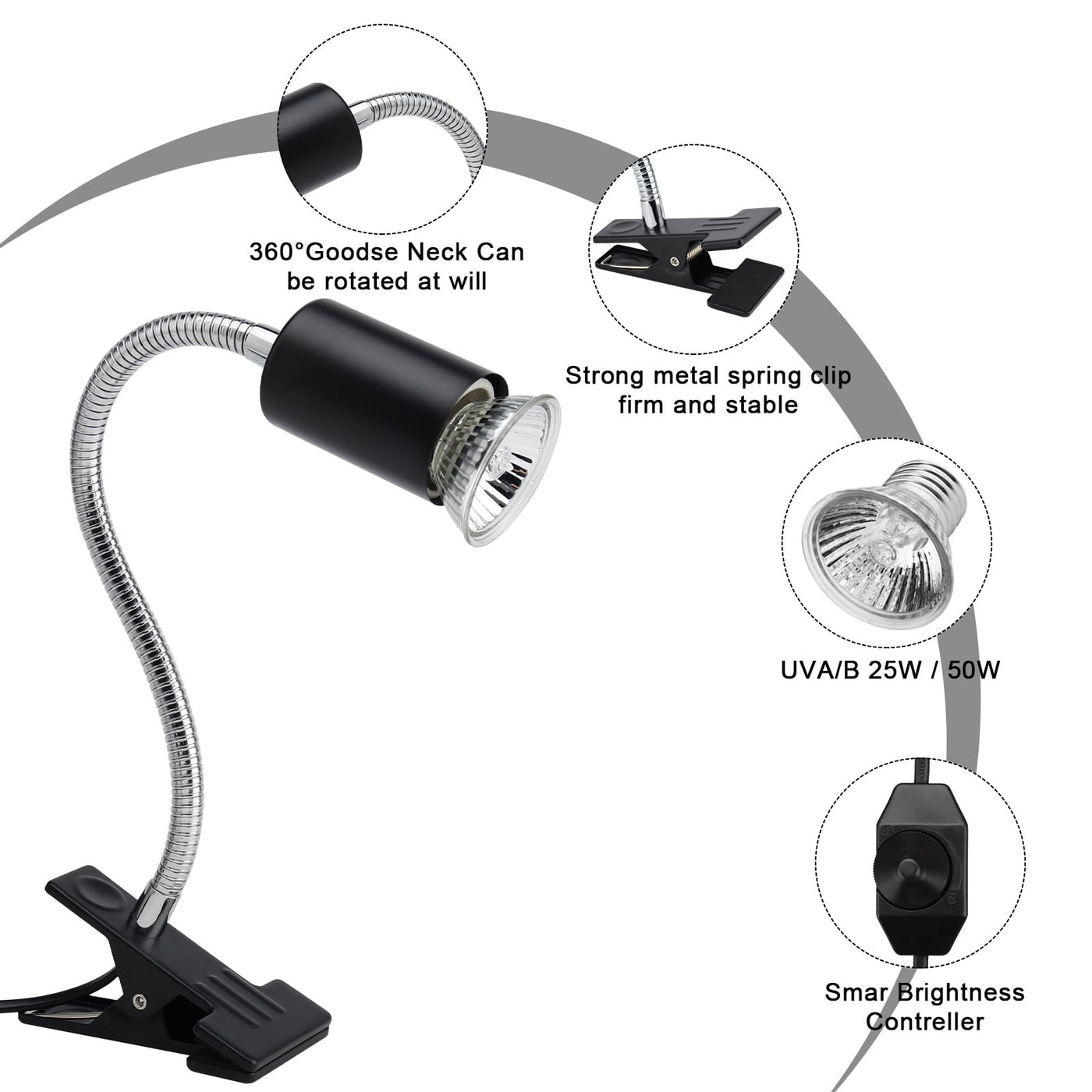 ?High Quality Bulbs?: Two Bulbs Are Provided,With Silver Plating Process To Ensure Anti-Oxidation And Explosion-Proof, And Vacuum Glass Tube To Extend Bulb Life, Simulate The Solar Spectrum, Increase The Temperature, Supplement Calcium, Provide More Direct Sunlight And Higher Uv Radiation. ?Kind Tips?: When You Remove The Lamp, Please Wait A Few Minutes For It To Cool Down Before Operating. ?Description?:Metal Bracket, Hidden Wiring, Beautiful Atmosphere. ?Specification?: Working Voltage: 110V Power: 50W Power Plug: American Plug/E27 Colour: Black Material: Ceramic (Bulb), Stainless Steel (Tubular) Lamp Power: 50W Support Maximum Power :100W Lamp Size: 5*5*5Cm Packing Size: 7.9 * 5.5 * 3.2 Inch Package Weight:550 G/19.5 Oz Packing List: 1* Light Stand & 1*25W Bulb&1*50W Bulb.