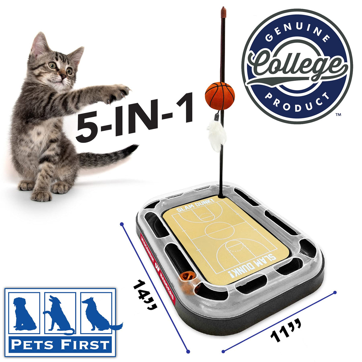 The All New Pets First Collegiate Cat Scratching Toy!While You Might Already Have Some Cat Toys & Accessories Such As The Petstages Cat Tracks Or The Bergan Turboscratcher Or The Smartykat Catnip Toy Etc. . . When You Need A Cat Toy To Fulfill Your Basketball Craves, While Also Being A Total Blast For Your Cat, This Is The Toy You Want.There Are So Many Ways To Keep Your Cat Satisfied While Getting A Kick Out Of The College Basketball Stadium Motif.Great As A Gift Too!This Cat Toy Will Have Your Kittens Play Basketball, Punting And Scratching Up The Field.The Rolling Cat Toy Ball With Bell Inside The Cat Tracks Around The Field Is A Wonderful Chase Toy That Cats Love To Poke At.Dont Forget The Field Is Adorned With Your Favorite Team On The Sides.When You Envision A Scratch-Board You Never Picture A Basketball Field And That Is What Pets First Has Delivered Here. For You!This Emerald Basketball Field Is As Tough As Your Average Basketball Player. Its Designed To Be Tough Enough To Take What Your Cat Can Bring To The Fight. Dont Give Your Cat A Weak Flimsy Scratch Toy, Give Them An Ncaa Licensed Basketball Field Of Scratchboard.Many Cat Toys On Amazon Have A Ball Chasing Gimmick But This Ball Makes Noise And Has Several Windows In The Frame For Your Cat To Swipe At And Push Around. This Ball Cant Be Removed So Its Always With Your Toy And Not Loose Around Your Floor.The Question Isnt Will Your Cat Be Entertained But More Likely Will You Be Able To Keep Them Away From This Incredible Ncaa School Licensed Basketball Cat Toy.One Of The Many Unique Parts To This Toy Is The Refillable Catnip Basketball Toy With The Feathers Attached.This Basketball Will Know Pain, When Your Cat Sets Its Sights Upon It. Since The Plush Basketball Can Be Filled And Refilled With Catnip, Your Cat Will Never Stop Having Fun. Catnip Is Included!The White Feathers Attached Are There For Extra Flair For Your Cat To Have Even More Stimulation. If Youre A Basketball Fan And A Cat Owner Or If You Have A Friend Who Is And Has A Cat Look No Further. You Have Found The Ultimate Interactive Cat Toy For The Ultimate Fan.Another Amazing Feature That Was Designed For This Cool Cat Toy Is The Reversible Cardboard!Our Reversible Basketball Felt Can Be Switched To A Cardboard Cat Scratcher So That Your Cat Can Scratch On The Cardboard While Not Having To Scratch The Beautiful Basketball Court! Alternatively, It Can Scratch On Both Sides! Wow!This Is The #1 Cat Toy! The #1 Cat Scratcher!Teams:This Cool Cat Toy Comes In Most Hot College Ncaa Teams, Here Are Just A Few To List: Boston College, Missouri, Arkansas State, Florida International, Central Michigan, Iowa State, Florida Atlantic, Massachusetts, California, Northwestern, Notre Dame, Iowa, Boise State, Arizona State, Wyoming, Memphis, Ohio, Toledo, Pittsburgh, Uab, Tulsa, Oregon State, Mississippi State, Lsu, Texas, Syracuse, Virginia Tech, Eastern Michigan, Nevada, Fresno State, Penn State, Arizona, South Carolina, Marshall, Texas State, Alabama, Army, Rutgers, Stanford, Auburn, Oklahoma, Akron, Cincinnati, Tcu, East Carolina, Georgia Tech, Georgia, Utah State, Georgia State, Rice, Temple, Tennessee, Unlv, Northern Illinois, Louisiana Tech, Michigan, West Virginia, South Alabama, Bowling Green, Illinois, Byu, Oklahoma State, Ole Miss, Old Dominion, Purdue, Air Force, San Diego State, Wake Forest, Charlotte, Utep, Nc State, Usc, Wisconsin, Kansas State, Buffalo, Vanderbilt, Connecticut, Georgia Southern, Baylor, Washington, Michigan State, Ul-Lafayette, New Mexico State, Texas A&M, Maryland, Hawaii, Navy, Ul-Monroe, Western Kentucky, Utah, Duke, Idaho, Miami-Fl, South Florida, Clemson, Minnesota, Troy, Central Florida, Ucla, North Carolina, Colorado, Indiana, Middle Tennessee, Arkansas, Nebraska, Miami-Oh, Smu, Houston, Coastal Carolina, Kent State, Kentucky, Western Michigan, Louisville, Utsa, North Texas, Appalachian State, Tulane, Ohio State, Florida State, Texas Tech, Oregon, Kansas, Florida, Washington State, Southern Miss, Colorado State, San Jose State, Virginia, New Mexico & Ball State.Need More Pet Gear?? Love Matching??While You Buy The Best & Coolest Sports Cat Toy For Your Best Friend, Why Not Buy Our Matching Pets First Ncaa Pet Gear? Ncaa Dog Collars, Ncaa Pet Bandanas, Ncaa Dog & Cat Jerseys, Ncaa Tee Shirts, Ncaa Leashes, Ncaa Beds... Buy The Whole Ncaa Pet Collection & You Are Sure To Be Ready For Another Great Win!Don'T Forget To Check Out Our Premium Training Pads, Aka The Best Puppy Pads Sold On Amazon!Choose Your Favorite Sports Team, And Add To Cart Now Before We Run Out Of Stock Again!Pets First:Pets First Company Has Established Itself As The Largest Sports-Licensed Pet Product Company In The Country.Pets First Has Gained Its Reputation In Providing Every Pet Owner With Premium Licensed Pet Products; From Unique And Colorful Apparel Items To Fun And Playful Toys And Accessories.Working With The Latest Technology, Our Creative Designers Cho