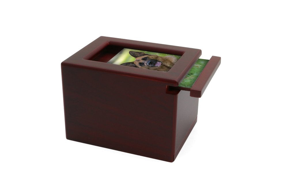 Near & Dear Pet Memorials Mdf Pet Photo Cremation Urn, 85 Cubic Inch, Cherry Finish