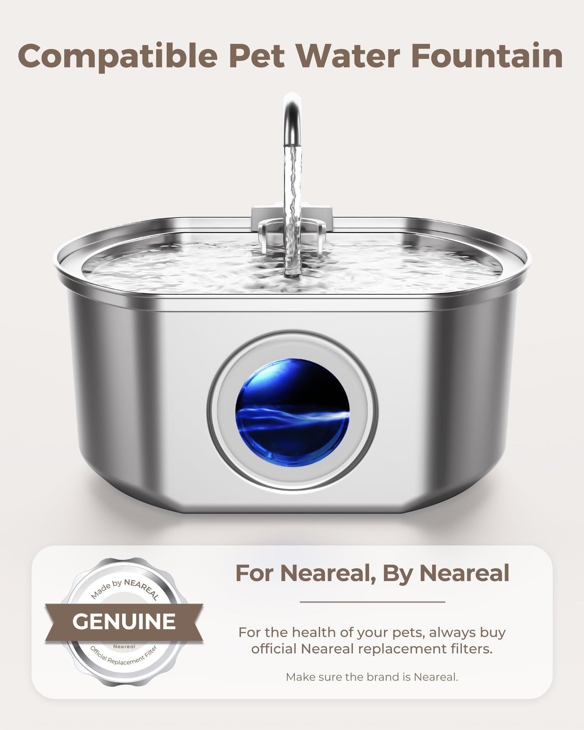 Neareal Stainless Steel Pet Fountain Filters - 12-Pack Premium Compatibility Designed Exclusively For Neareals 3.2L/108Oz Stainless Steel Pet Fountain. Verify Filter Shape/Size Using Product Images To Ensure A Perfect Fit. Triple-Action Filtration 1?? Debris Defense: Non-Woven Fabric Traps Hair And Particles. 2?? Water Softening: Ion-Exchange Resin Neutralizes Heavy Metals And Hard Minerals. 3?? Pure Hydration: Activated Carbon Eliminates Chlorine, Odors, And Impurities-Promoting Fresher, Healthier Water For Your Pets. Long-Lasting Value 12 High-Efficiency Filters (1-2 Weeks Each) Provide 12-24 Weeks Of Continuous Clean Water. Ideal For Multi-Pet Households-Save Time And Money With Fewer Replacements. Smart Maintenance Replace Every 7-14 Days (Weekly For 2+ Pets) To Prevent Clogs And Ensure Optimal Performance. Consistent Swaps Keep Water Fresh And Reduce Urinary Health Risks. Quick &Amp; Easy Setup Soak Filter In Water For 5 Minutes, Rinse For 30 Seconds, And Install. Note: Remove Loose Carbon Pellets After Rinsing-Normal During Transit. Why Neareal? Engineered For Durability And Pet Wellness. Trust Neareal To Deliver Crystal-Clean Water That Keeps Your Furry Friends Hydrated, Healthy, And Happy. -- ? Includes: 12 Replacement Filters + 12 Replacement Sponges ? Compatibility: Neareal 3.2L/108Oz Stainless Steel Fountain Only (Check Model Before Purchase).