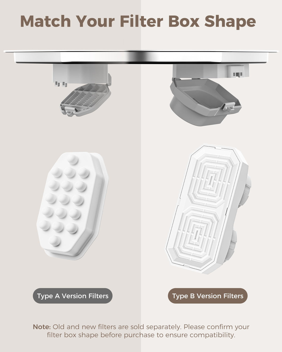 These filters are exclusively engineered to fit the Neareal 3.2L/108oz stainless steel pet fountains. Always verify the filter shape and size using product images to guarantee a perfect fit for your fountain.