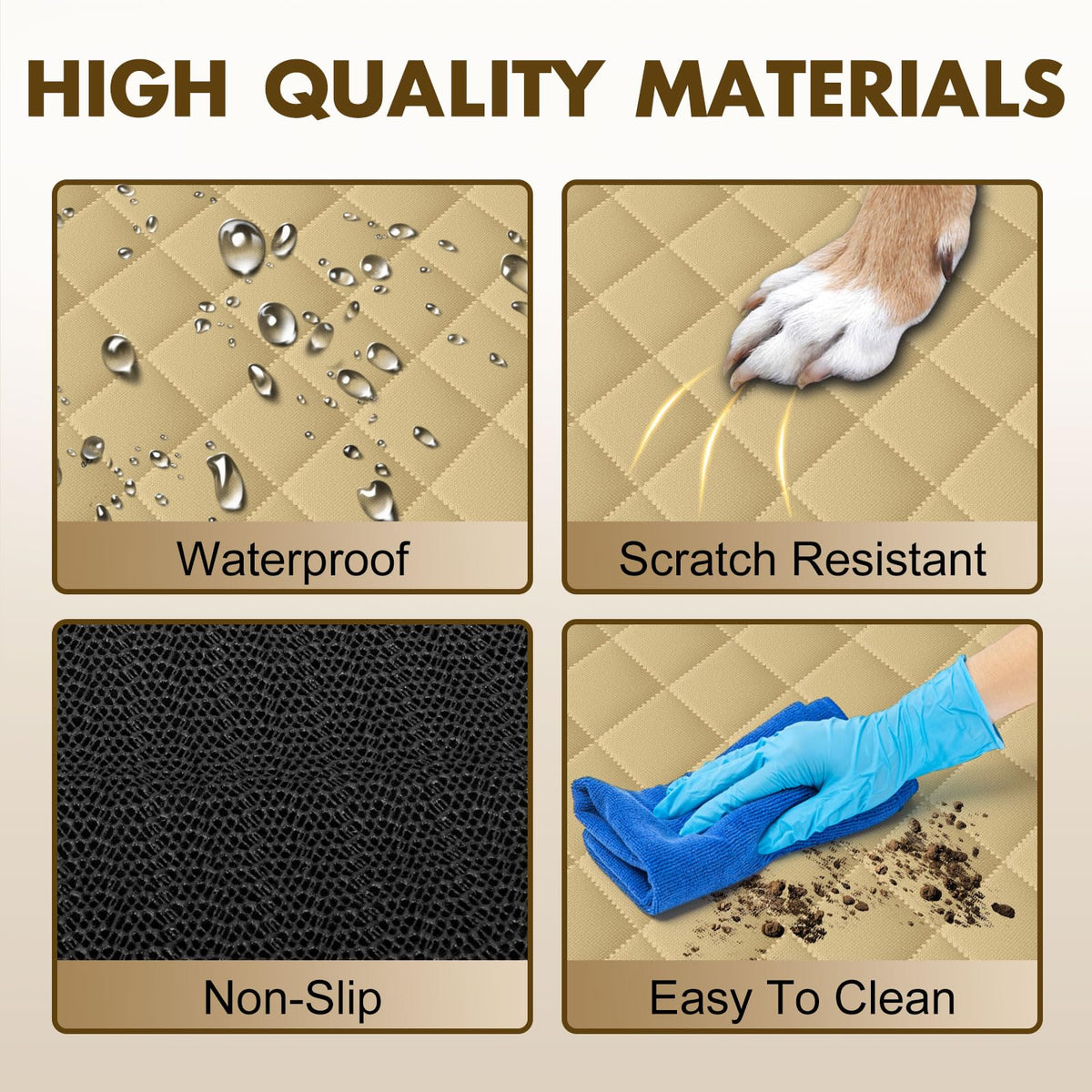 The car rear seat fully wrapped pet mat is designed to protect beloved pets and cars. The car pet mat is made of waterproof material, which can effectively prevent pet urine, feces and other stains from penetrating and keep the mat clean. Meanwhile, it is easy to clean by simply wiping with a damp cloth. The bottom of the mat has anti slip design to ensure that pets will not slide during driving. Full surround design, this design can protect the seats of your car in all directions, preventing pets from scratching or dirtying the seats.