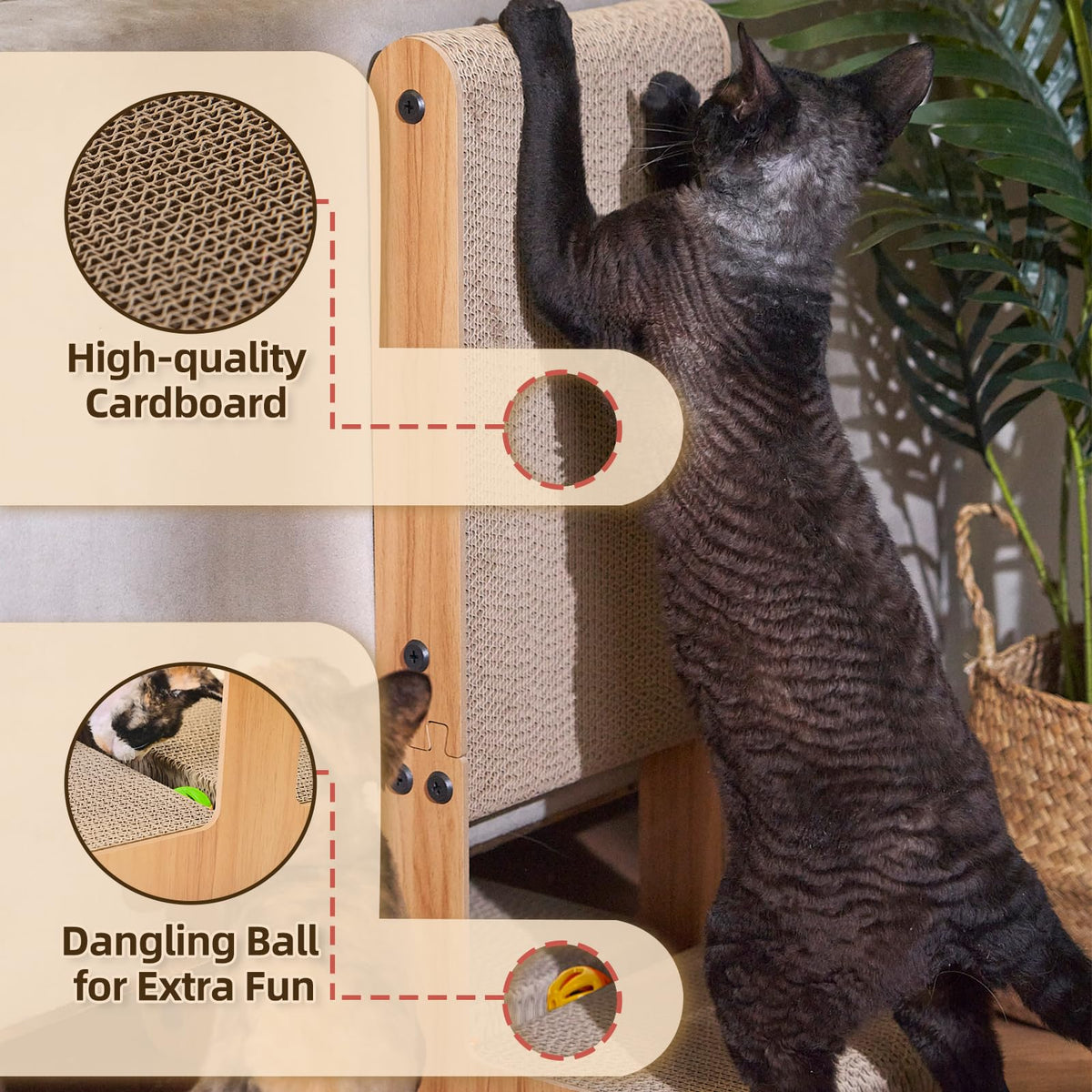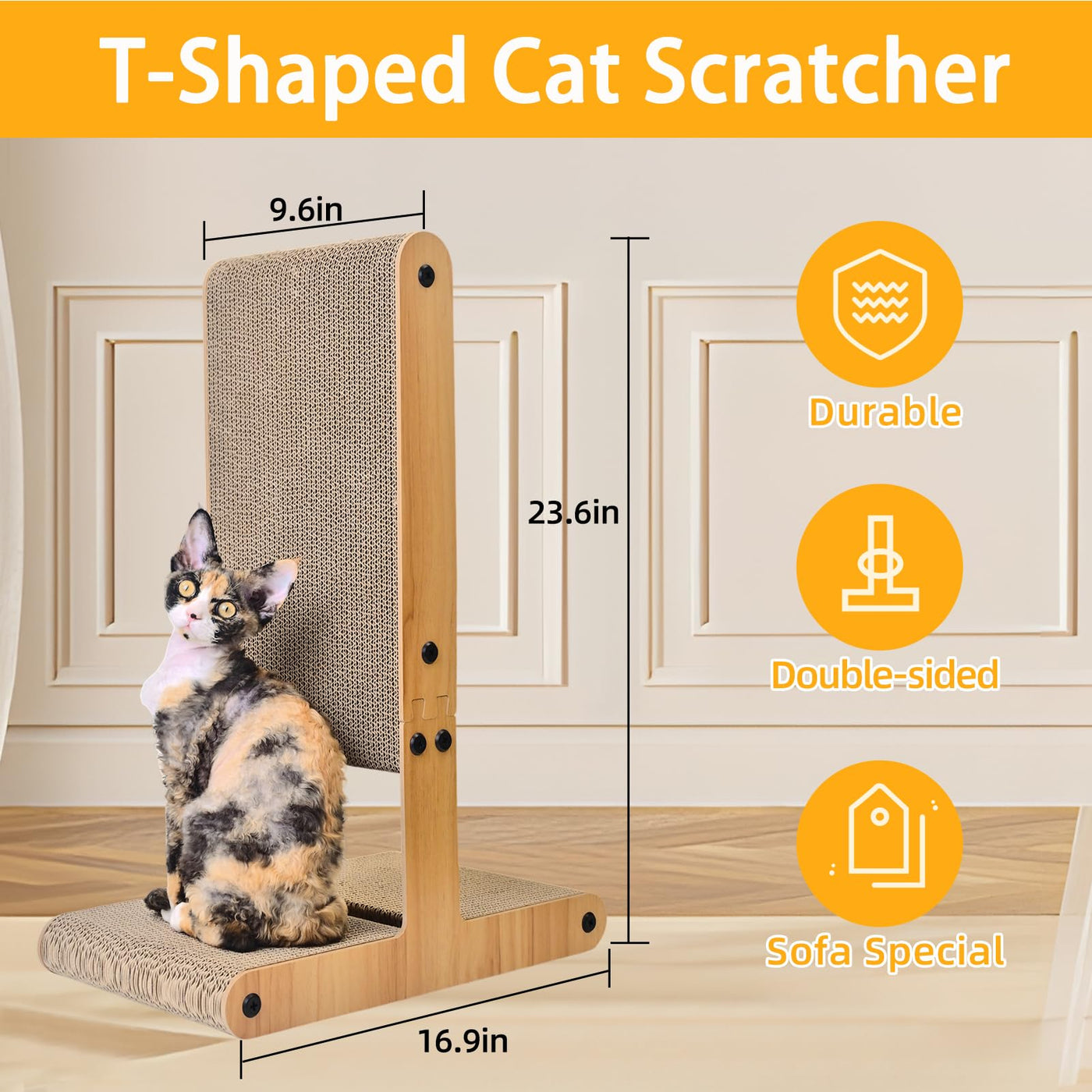 Nekosan T-Shaped Cat Scratcher For Indoor Cats, Double-Sided Furniture Protector, 23.6X16.9X9.6 Inch Large, Cardboard With Ball