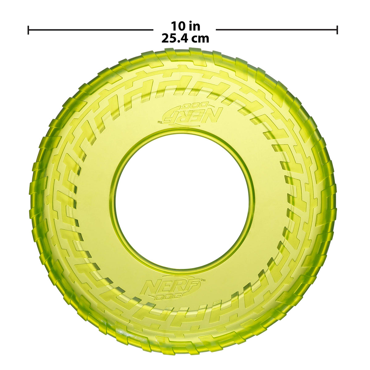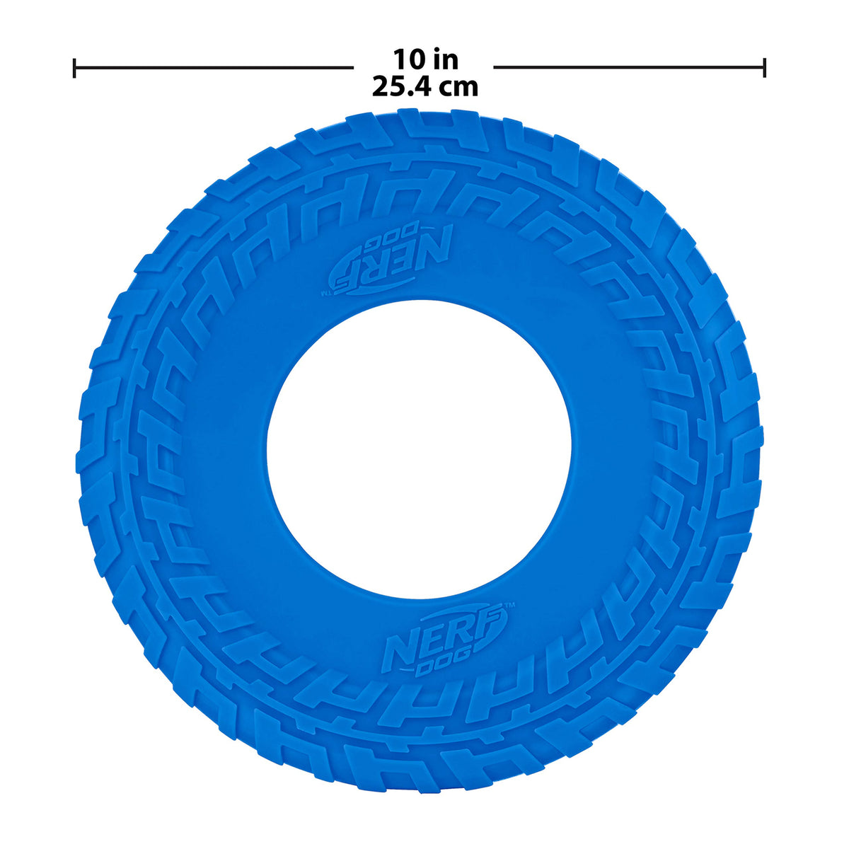 Nerf Dog 5-Piece Dog Toy Gift Set Includes 2.5in Squeak Tennis Ball 3-Pack 10in Translucent TPR Tire Flyer and 10in TPR Tire Flyer Nerf Tough Material Green and Blue