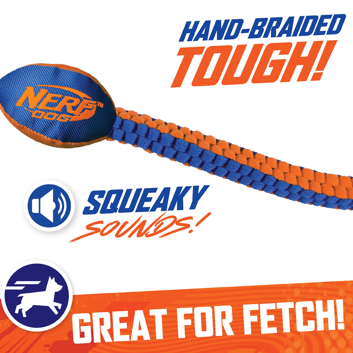 Nerf Dog Vortex Chain Tug Dog Toy With Squeaker Football Head, Lightweight, Durable, Water Resistant, 30 Inches, For Medium To Extra-Large Breeds, Single Unit (3474)