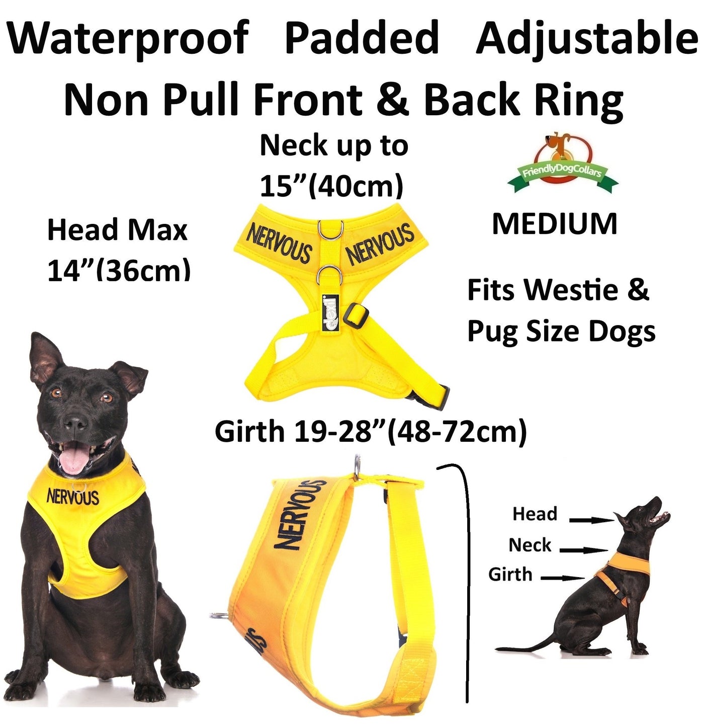 Nervous Yellow Color Coded Waterproof Padded Adjustable Non Pull Front And Back Ring Alert Warning Medium Vest Dog Harness Prevents Accidents By Warning Others Of Your Dog In Advance