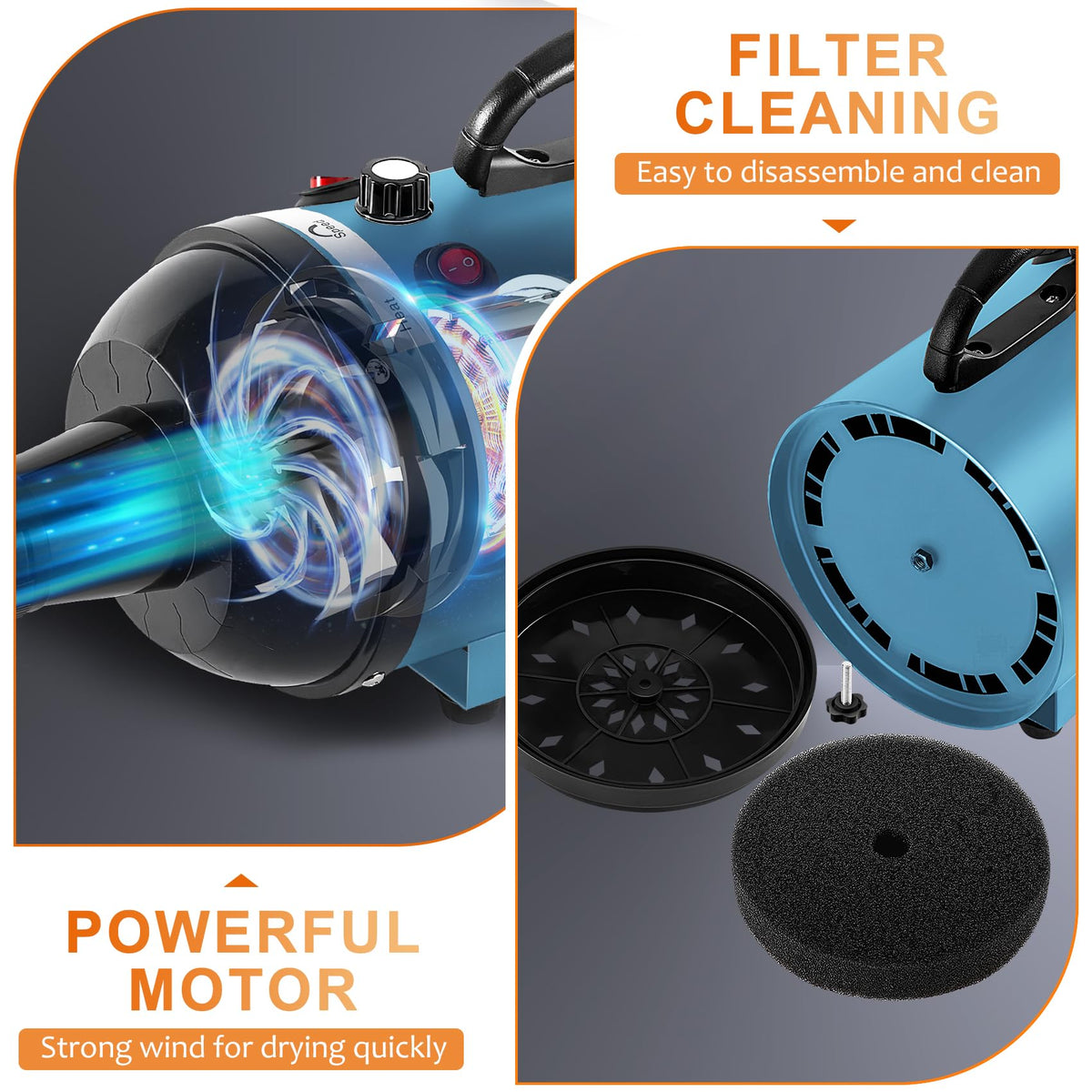 NESTROAD professional pet hair dryer equipped with a powerful and stable motor provide a quickly dry for your pets