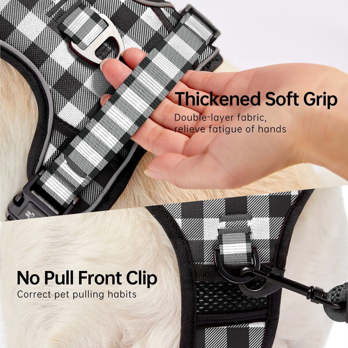 Nestroad Dog Harness (Checkered Black,S) With Leash, Reflective, Adjustable, Soft Padded, Easy Control Handle, For Small Dogs, F