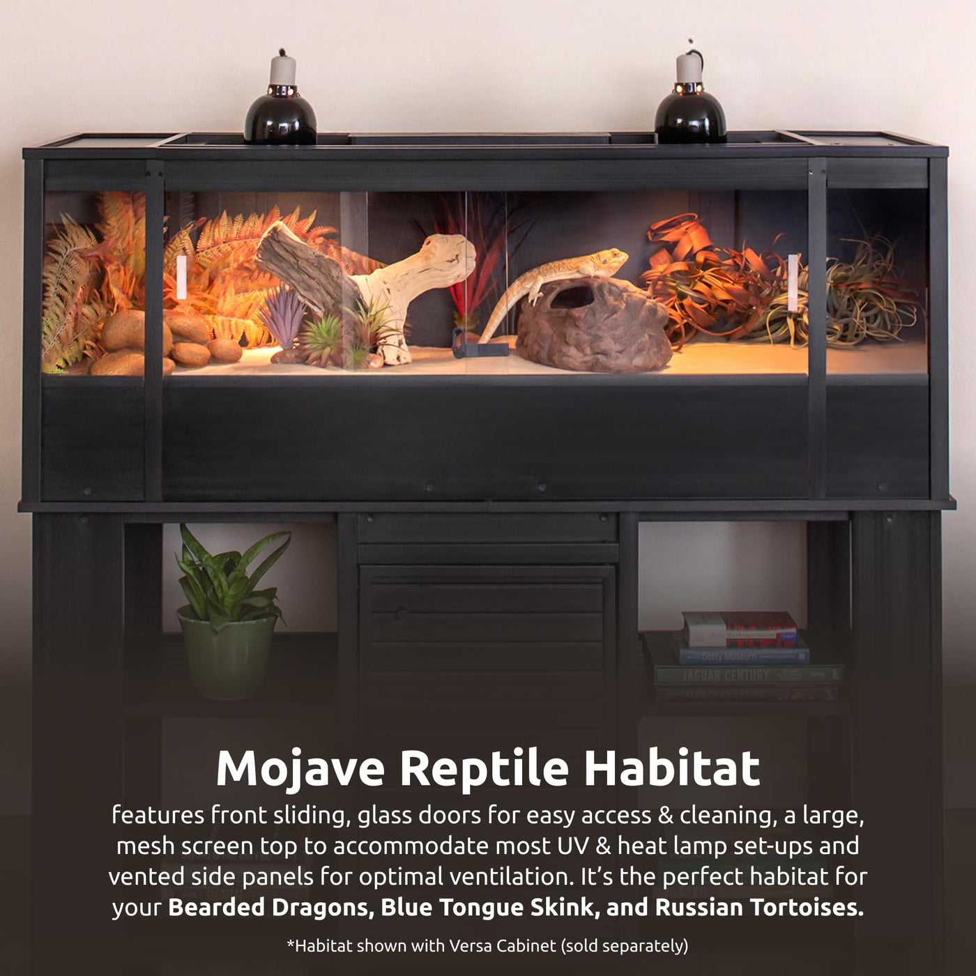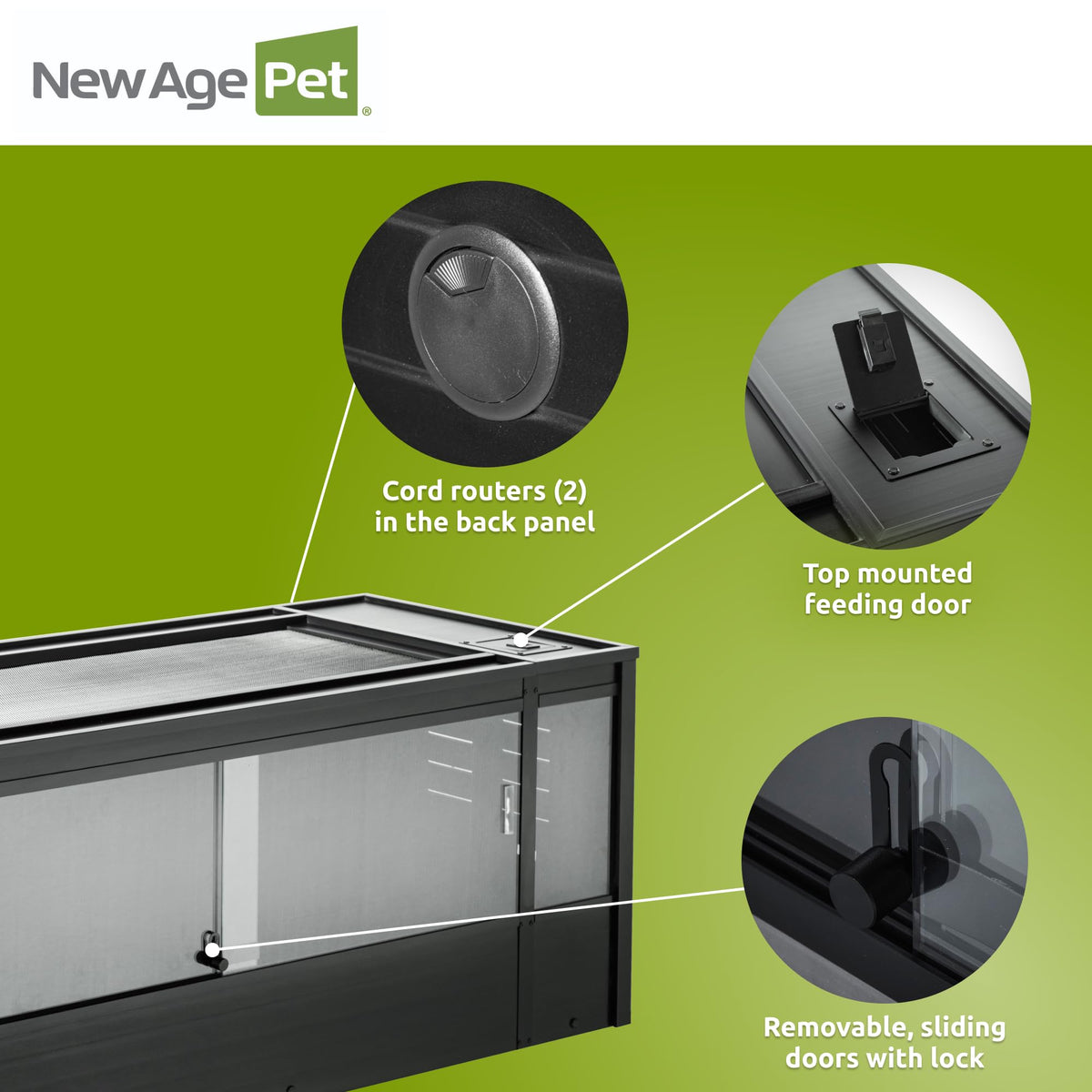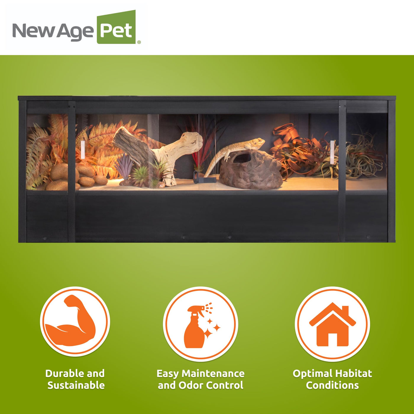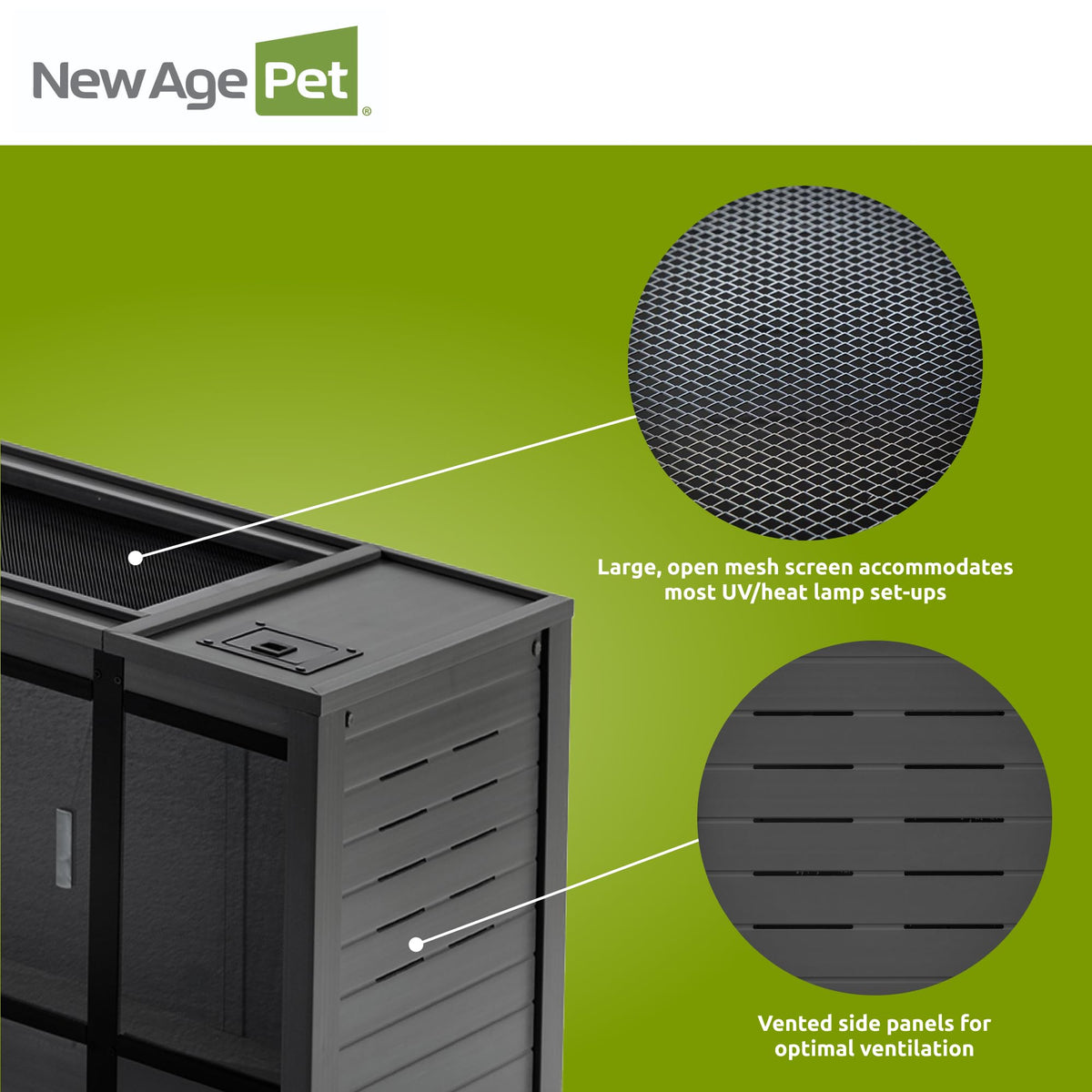New Age Pet Ecoflex 60 In Mojave Reptile Lounge In Espresso Black, Durable Wood Plastic Composite Habitat With Vented Side Panel