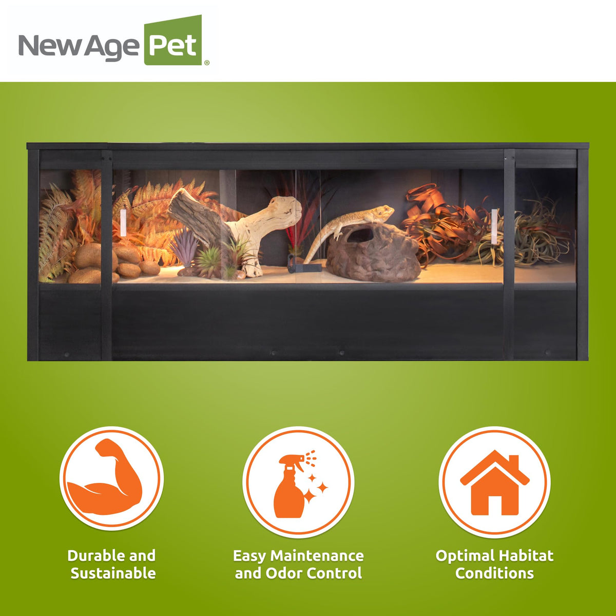 Introducing The New Age Pet Ecoflex 60'' Mojave Reptile Lounge, The Ultimate Habitat That Blends Innovative Design With Functionality For Your Reptilian Pets. Crafted From Ecoflex, This Lounge Is A Superior Choice For Pet Owners Seeking A Durable, Moisture-Resistant Solution For Their Tortoises, Turtles, Snakes, Or Iguanas. Unlike Traditional Materials, Ecoflex Is A Composite Blend Of Recycled Polymers And Reclaimed Wood Fiber By-Products, Designed To Withstand The Test Of Time And Provide A Comfortable Environment For Your Pets.