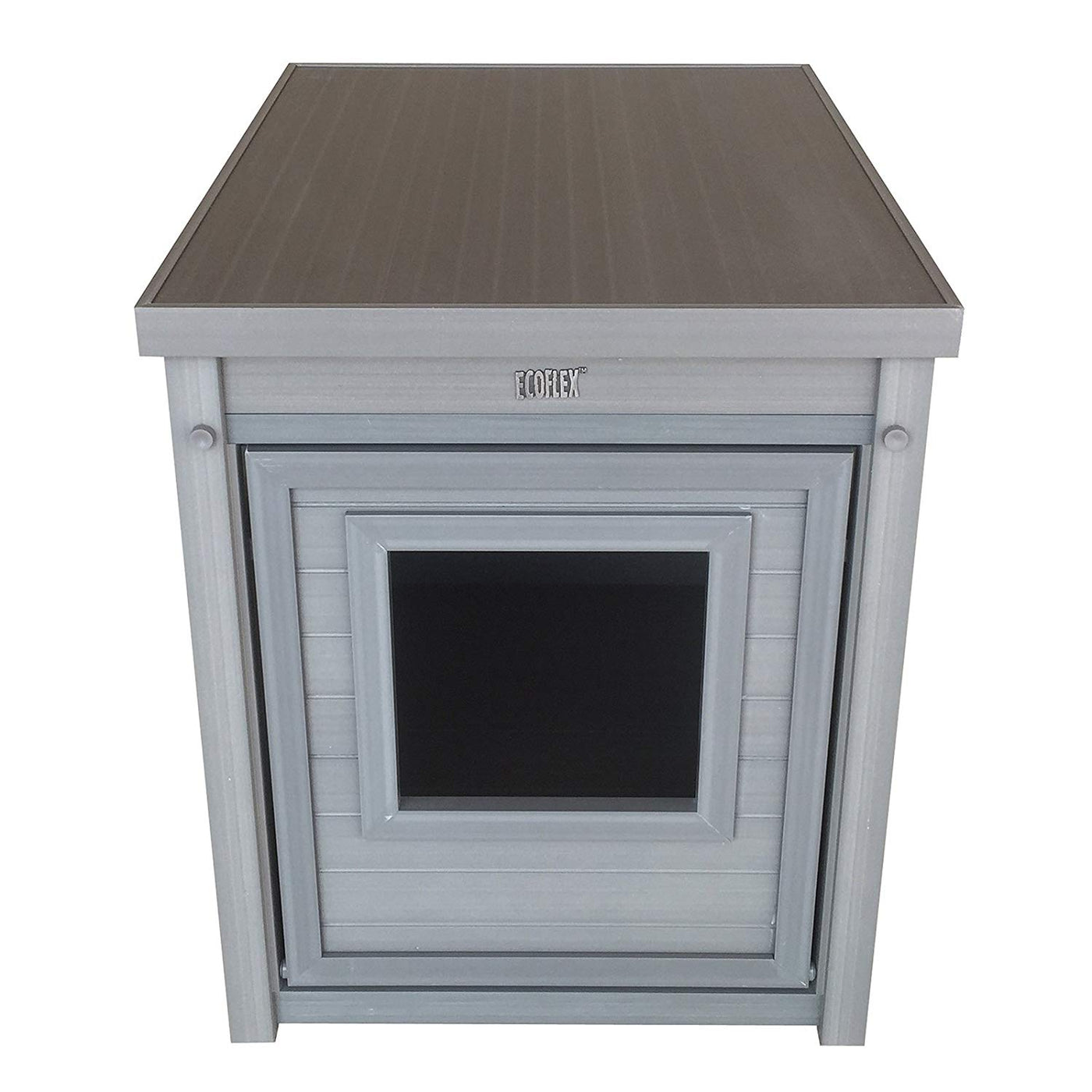 Hide your litter box, will ya?! The ECOFLEX Litter Loo litter box enclosure will keep your cat's unsightly litter box hidden away. Flip down front access for easy clean up. Elevate your living space with this space saving solution to cat litter boxes. Doubles as an end table. ECOFLEX is a proprietary formula that incorporates reclaimed wood and plastic into the material that allows the product to be eco-friendly and a great value as it will outlast most other products. ECOFLEX is 100% non toxic and does not absorb moisture. There is nothing in ECOFLEX that could harm your pets. Easy no tools assembly. Litter Box not included.