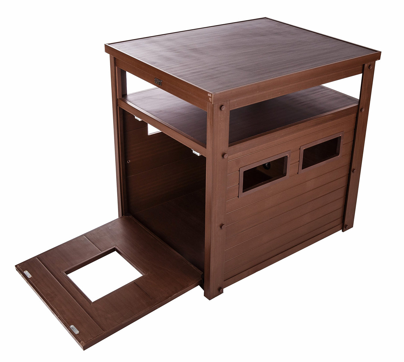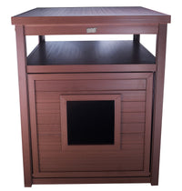 The new age pet litter Loo and Jumbo litter Loo litter box cover and end table is a stylish and sensible way to camouflage your cat’s unsightly litter box. The litter Loo is constructed from eco-conscious Eco FLEX and features a fold down front door for easy cleaning and sides vents for proper ventilation. This stylish litter box cover comes in three colors that look great in any home décor. The Jumbo litter Loo accommodates most Self-Cleaning litter boxes and includes a cord protector in the back to hide those cords!