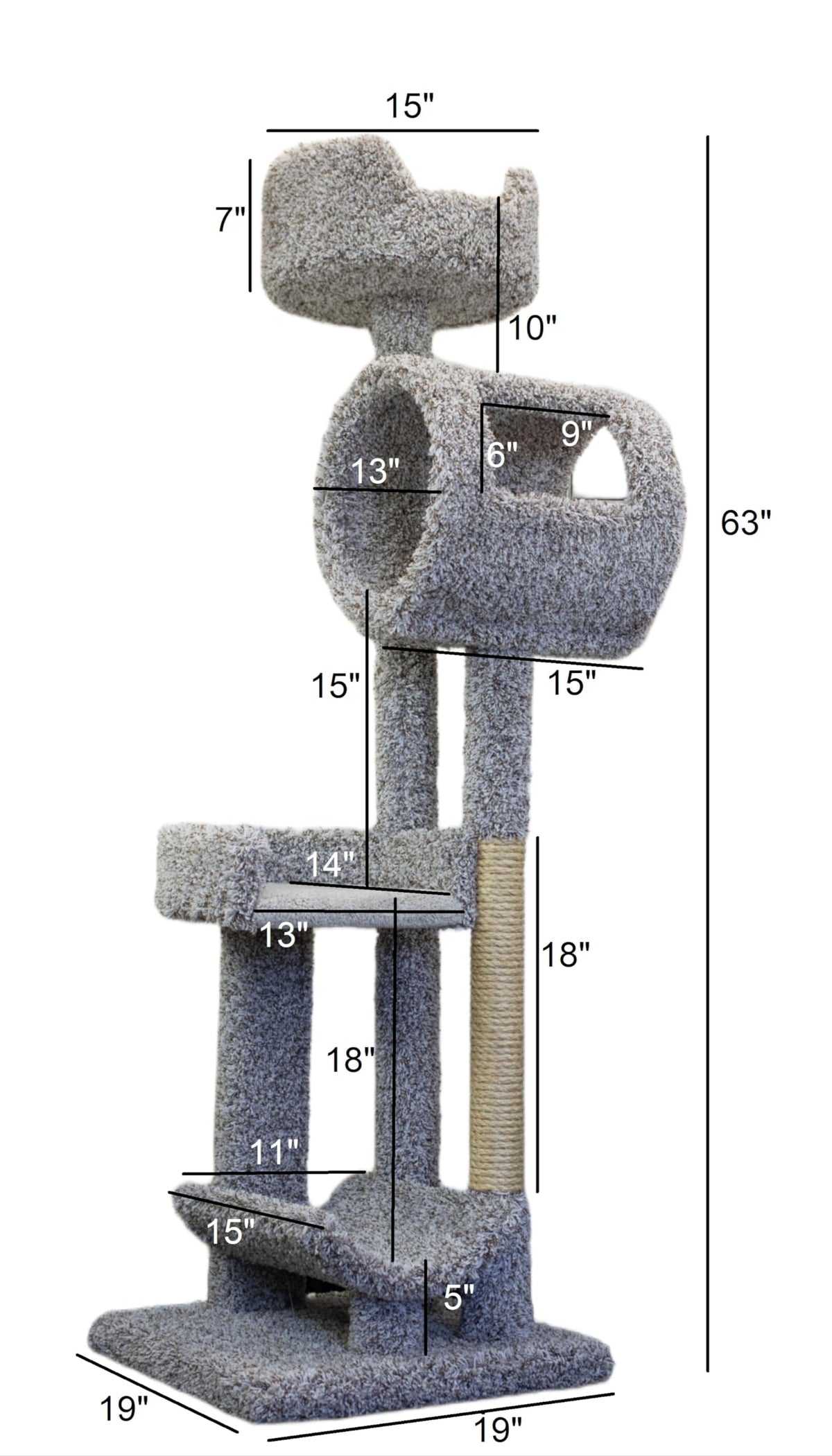New Cat Condos Staggered Cat Tower Is A Great Choice For Your Kitties As It Features A Hammock Shaped Perch, An Open-Faced Perch, A Play Tunnel With Window And A Deep Edged Perch. All These Choices Are A Great Add To Your Cat'S Kingdom. Providing These Options Ensures They Have A Place Of Their Own To Play, Climb, Scratch And Sleep. Built With A Wood Foundation And Covered With Real Carpet And A Thick Natural Sisal Rope This Cat Tower Is Sure To Be A Hit. Proudly Handcrafted In The Usa.