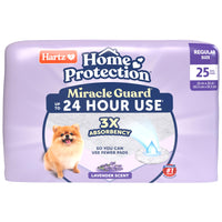 New! Hartz Home Protection Miracle Guard Lavender Scented Dog Pads, Regular Size 25 Count, 24 Hour Use, Wont Leak and Odor Elim