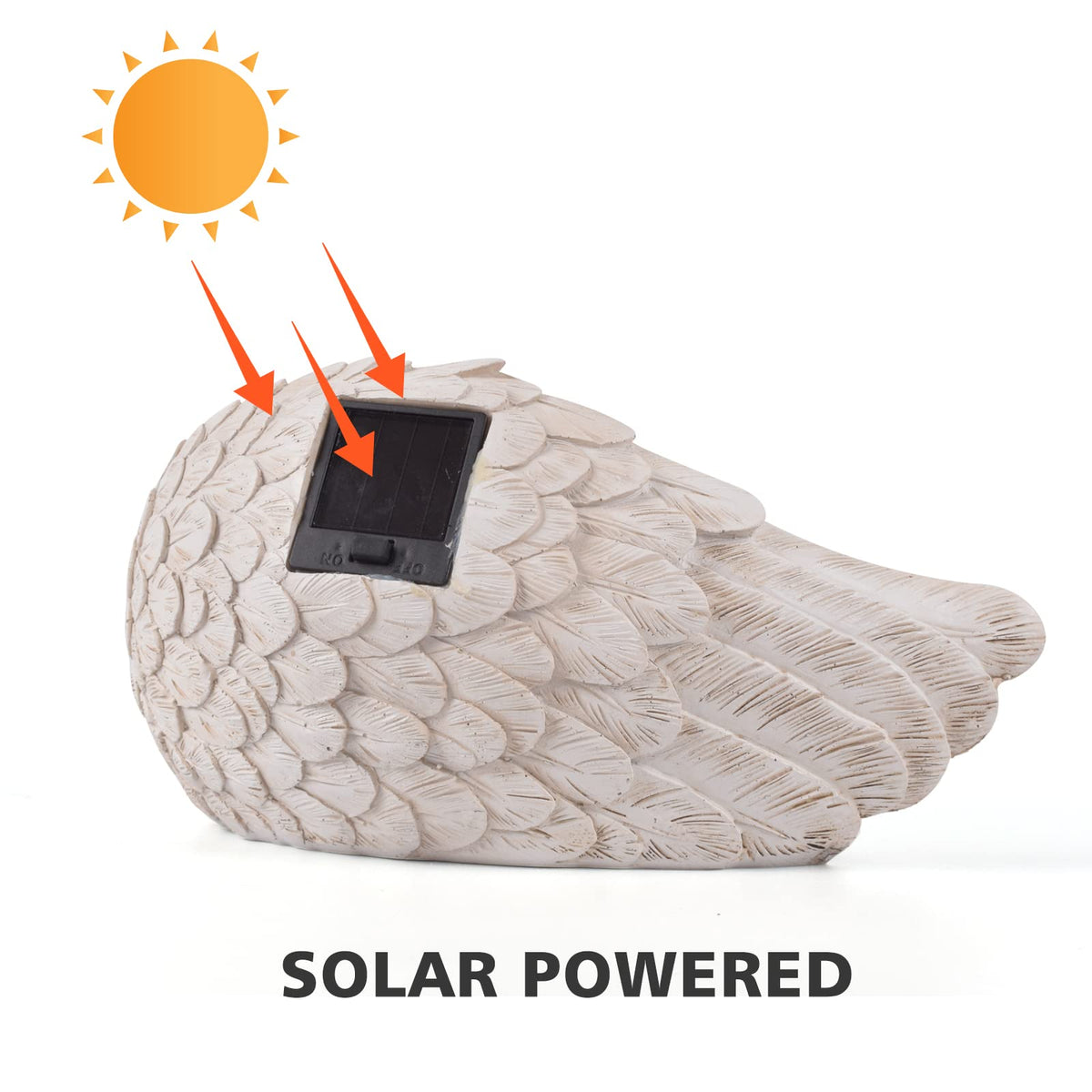 Q: How does the solar light feature work on the dog memorial statue?A: The solar light feature operates using solar energy. By keeping the switch in the 'ON' position and placing the statue in direct sunlight, it charges during the day and lights up at night for up to 8 - 10 hours on a full charge.