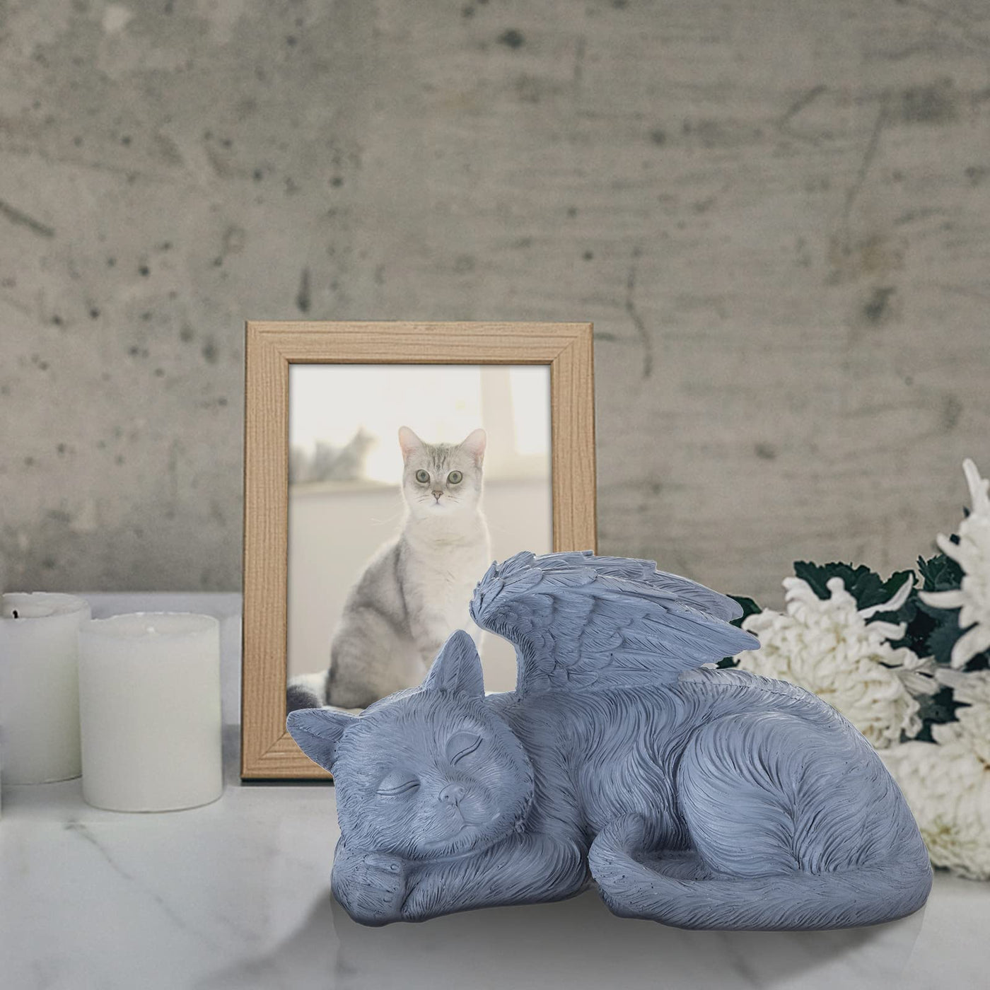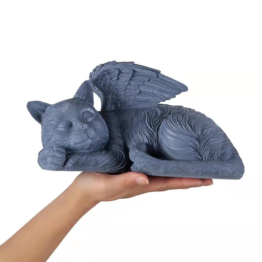 Newdream:The Cat Angel Memorial Statue,Cat Angle Memorial Placed In Indoor Angel Decorations, Pet Tombstone Cat Figurines, Pet Grave Markers Cat In Angel Wing Figurine(Big Greey)