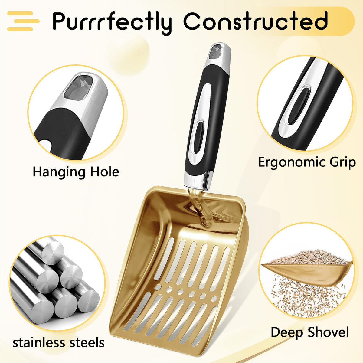 Newgf Stainless Steel Cat Litter Scoop,Metal Cat Litter Scoop,Kitty Metal Scooper,Sturdy Mesh Scooper,Suitabla Cat Scooper For C