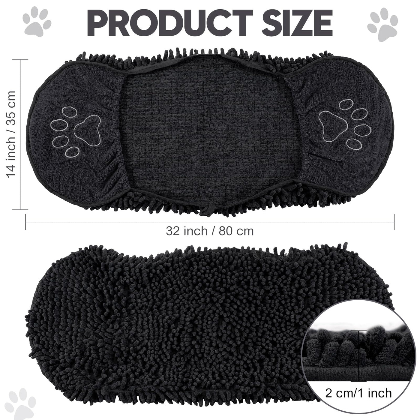 Features: Considerate gift: Our pet bath towel is packaged in a reusable packaging bag, ideal as a practical gift for pet owners, to bring them convenience in daily life while expressing your care and love. Quick drying and portable: This dog bathing towel is absorbent and can dry very quickly after washing, giving you a nice experience. It is lightweight and foldable, so you can easily carry it around for use. Specifications: Material: microfiber chenille Color: black Size: as pictures shown Package includes: 4 x Dog bath towel Notes: Manual measurement, please allow slight errors on size. The color may exist a slight difference due to different screen displays.