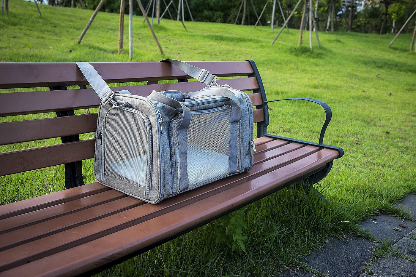 Airline Approved Carrier:With Airline-Approved Design, You Can Take Your Pet To Go To Everywhere. This Pet Carrier Provides Two Connecting Loop Handles For Balanced Carrying As A Dual Seat Belt Or Luggage Strap To Secure Transport. Convenient & Safe:Put The Package On Your Suitcase Directly, And Your Pet Can Move Forward With You Synchronously. This Design Can Lighten The Burden For You And Make Your Travel Relaxing. Portable & Washable:This Cat Carrier Is Easy To Carry And Store, Which Has A Padded Shoulder Strap And Handles. The Cozy Fleece Pet Bed Can Be Completely Removed And Machine-Washed. Washing Notes:1. Promptly Wipe Up Any Matter Or Liquid With A Damp Cloth Or Sponge.2. Machine Wash On Gentle Cycle In Cold Water With Suitable Detergent.3. The Wood And Foam Rubber Are Not Machine Washable, And The Other Parts Are Machine Washable. Tips:1.Do Not Place The Large Pet Carrier Under An Airplane Seat: Only Suitable For Daily Travel, Car Seat Journey And Pet Hospital Etc.2.Do Not Take The Cat Carrier On The Southwest Airlines: Our Pet Carrier Is 11.0 Inches High(Medium Size), Which Is Out Of The Southwest Airlines Maximum Height (8.5 Inches)3.Better Available For Small And Medium Pets Within 15Lbs(Medium) / 23Lbs(Large). Please Measure Your Pet Size In Advance.4.A New Pet Carrier May Have A Smell, Please Wash It Or Place It In An Outdoor Ventilated Place For Hours Before First Use.Package Contains:1 X Pet Carrier