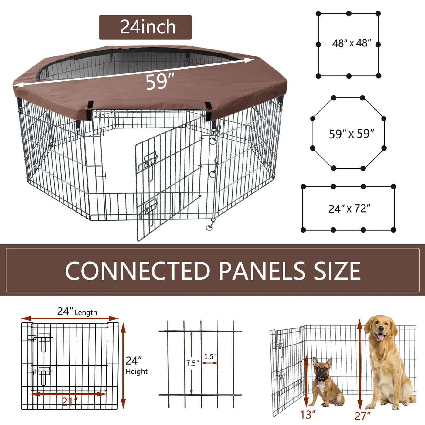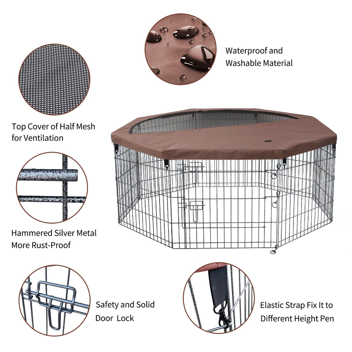 Give Your New Puppy, Kitten, Dog, Rabbit A Safe Place To Play Indoors Or Out With The Dog Playpen Indoor. This Playpen For Dogs Comes With Eight 24X24/30/36-Inch Panels That With Top Cover Or Bottom Pad.Bottom Pad Could Be Used As A Mat To Protect Floors And Carpets, It Could Also Be A Top Cover If You Need. Top Cover Keeps Pets From Jumping Out; Protect Pets From Birds Of Prey Outdoor When There Is No Supervision; Create Shelter For Pets When In Strong Sun In Summer Or Rain; Provide Some Privacy For Shy And Baby Pets.