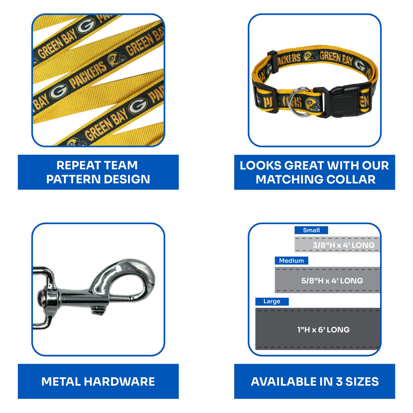 Nfl Pet Green Bay Packers Dog Leash, Small Football Team Leash For Dogs & Cats - Shiny & Colorful, Licensed By The Nfl