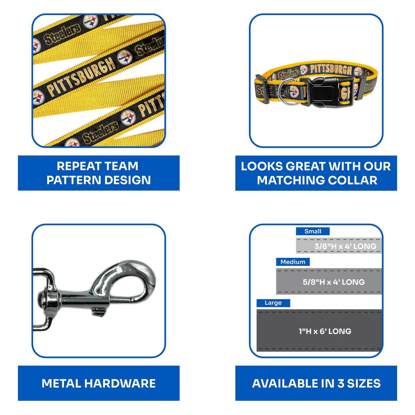 Nfl Pet Leash Pittsburgh Steelers Dog Leash, Large Football Team Leash For Dogs & Cats. A Shiny & Colorful Cat Leash & Dog Leash