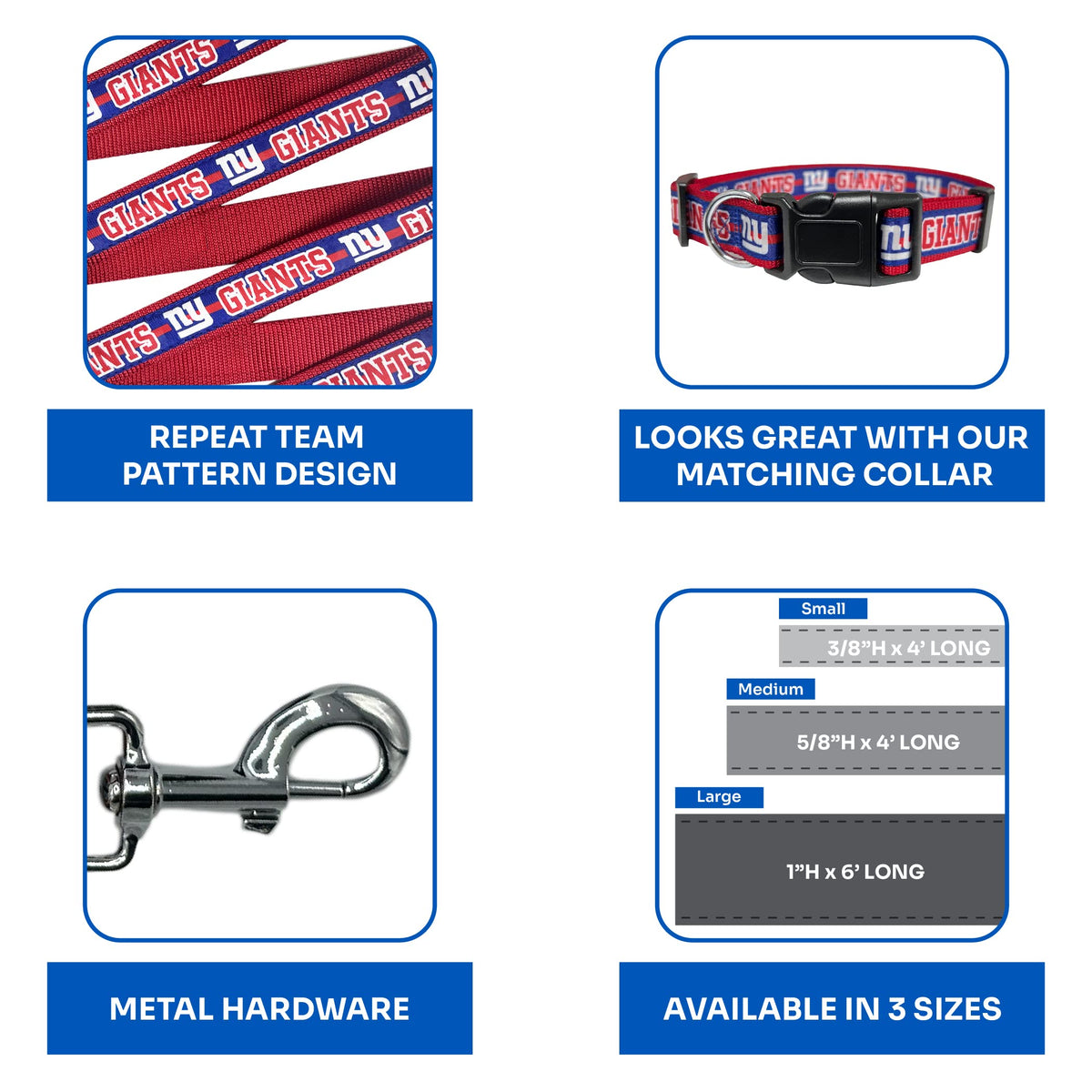 Nfl Pet New York Giants Dog Leash, Small Football Team Leash For Dogs & Cats - Shiny & Colorful, Licensed By The Nfl