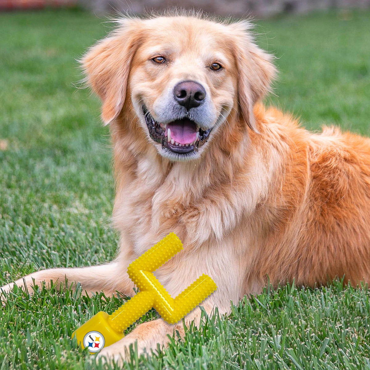 Finally Here! The All-New Flavored Nylon Bone For Dogs That Are Ready For A Football Game!Elevate Playtime With Your Furry Friend To The Next Level With The Pets First Megachew Licensed Nfl Hard Nylon Football Goal Post Chew Toy, An Officially Licensed Product That Proudly Showcases Your Favorite Nfl Football Team'S Logo And Vibrant Team Colors.Crafted With Durability In Mind, This Chew Toy Is Constructed From Tough Nylon Material, Ensuring It Can Withstand Even The Most Vigorous Chewing Sessions, Making It Perfect For Dogs Of All Sizes.Available In Both, A Football Shape And In A Goal Post Shape. - Purchase Both For A Real Doggy Football Game!Whether Your Pet Enjoys Solo Play Or Prefers Interactive Games, This Football Chew Toy Is Designed To Provide Hours Of Entertainment And Fun.Its Textured Surface Not Only Adds To The Tactile Experience But Also Helps Promote Dental Health By Effectively Cleaning Your Pet'S Teeth And Massaging Their Gums As They Chew, Reducing Plaque And Tartar Buildup For Better Oral Hygiene.Furthermore, This Chew Toy Is More Than Just A Plaything - It'S A Symbol Of Team Pride And Spirit, Allowing You To Share Your Love For Your Favorite Nfl Team With Your Loyal Companion.Wait, Did I Mention? Yes! It'S Bacon Flavored! Making This Nylon Toy Taste & Smell Delicious!!!Whether You'Re Tossing It Around For A Game Of Fetch In The Backyard Or Engaging In A Friendly Tug-Of-War Indoors, This Toy Encourages Bonding Time Between You And Your Pet While Reinforcing Their Natural Instincts To Play And Explore.Additionally, You Can Rest Assured Knowing That Pets First Prioritizes The Safety Of Your Furry Friend, Using Only High-Quality, Non-Toxic Materials In The Construction Of This Chew Toy, Providing A Safe And Enjoyable Play Experience.So, Whether You'Re Gearing Up For Game Day Or Simply Looking For A Durable And Entertaining Toy For Your Pet, The Pets First Licensed Mega Chew Nfl Hard Nylon Goal Post Flavored Chew Toy Is The Perfect Choice For Every Football-Loving Pet Owner.Pets First: Pets First Company Has Established Itself As The Largest Sports-Licensed Pet Product Company In The Country. Pets First Has Gained Its Reputation In Providing Every Pet Owner With Premium Licensed Pet Products; From Unique And Colorful Apparel Items To Fun And Playful Toys And Accessories. Working With The Latest Technology, Our Creative Designers Choose From The Highest Quality Materials To Provide Durable, Unique And Innovative Pet Merchandise. Our Factories Follow The Highest Standards Of Safety Guidelines To Ensure Your Pet'S Security While Providing A Long Lasting Product.Licenses: Pets First Has Secured Licenses With Major League Baseball (Mlb), Major League Baseball Players Association (Mlbpa), National Football Association (Nfl), National Football Players Association (Nflpa), National Hockey League (Nhl), National Basketball Association (Nba), Major League Soccer (Mls) (Real Madrid C.F. Soccer Club Real Madrid Club De F Tbol),Laurdiy, Realtree, John Deere, Nasa & Over 50 Of The Top Colleges In The Country (Ncaa).When You Are A Pet Owner, You Are Part Of The Pets First Family! At Pets First We Always Have You Covered!