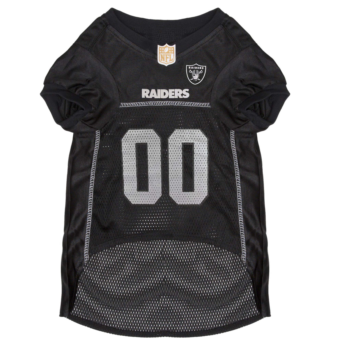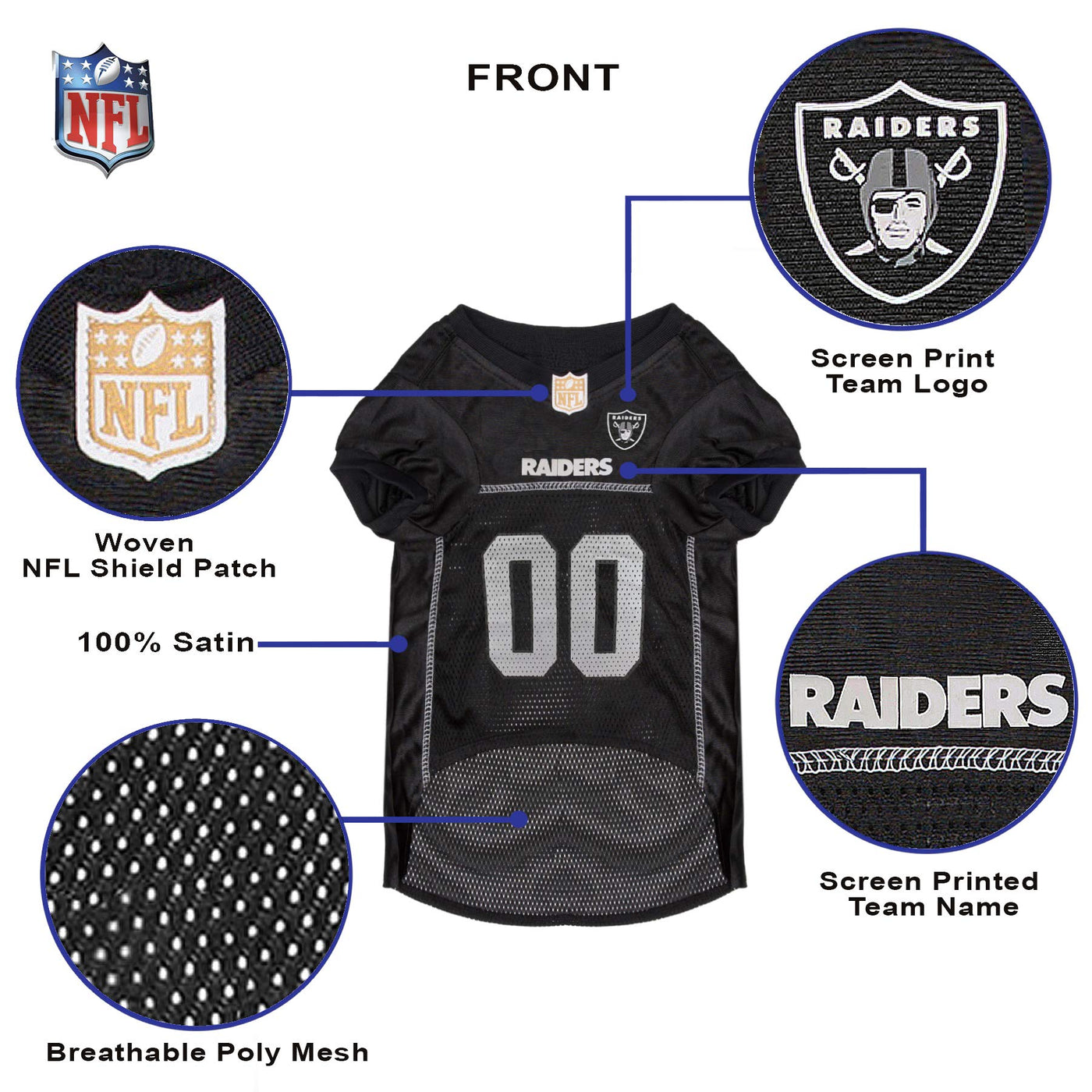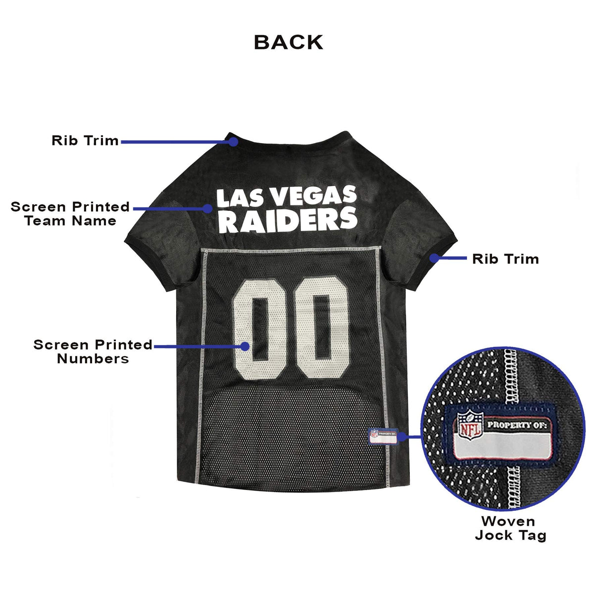 Q: What materials is the NFL Raiders Dog Jersey made from?A: The jersey is made from high-quality poly-mesh and satin materials, ensuring maximum comfort and durability for your pet while they enjoy their time in this stylish apparel.