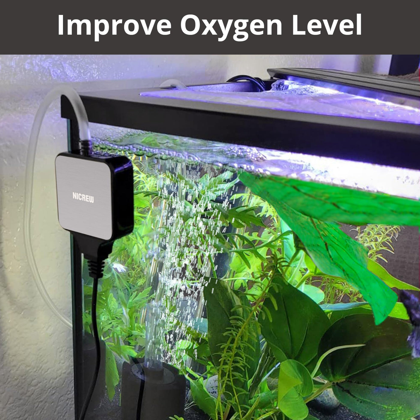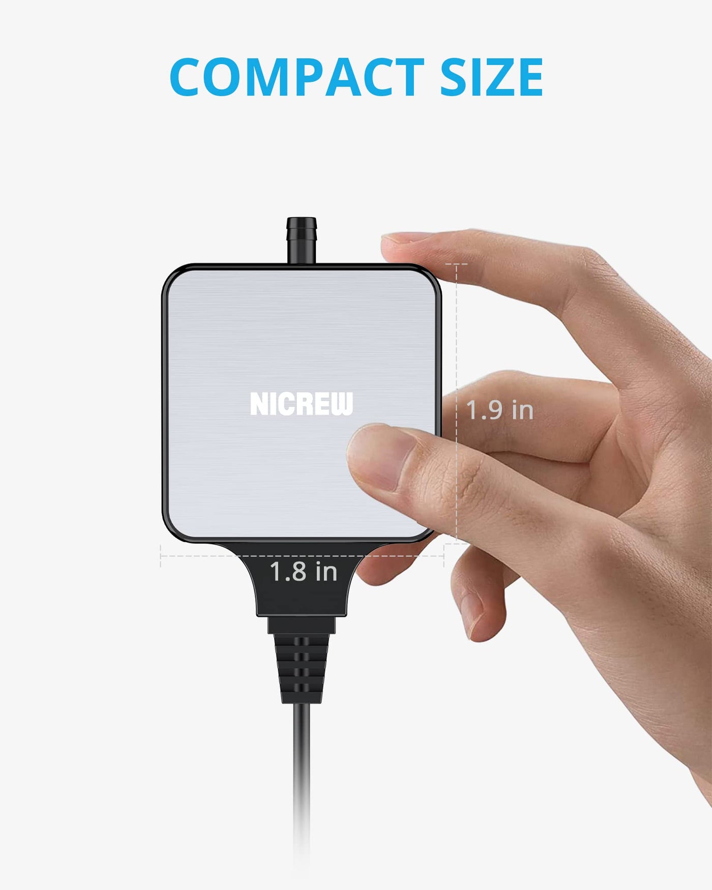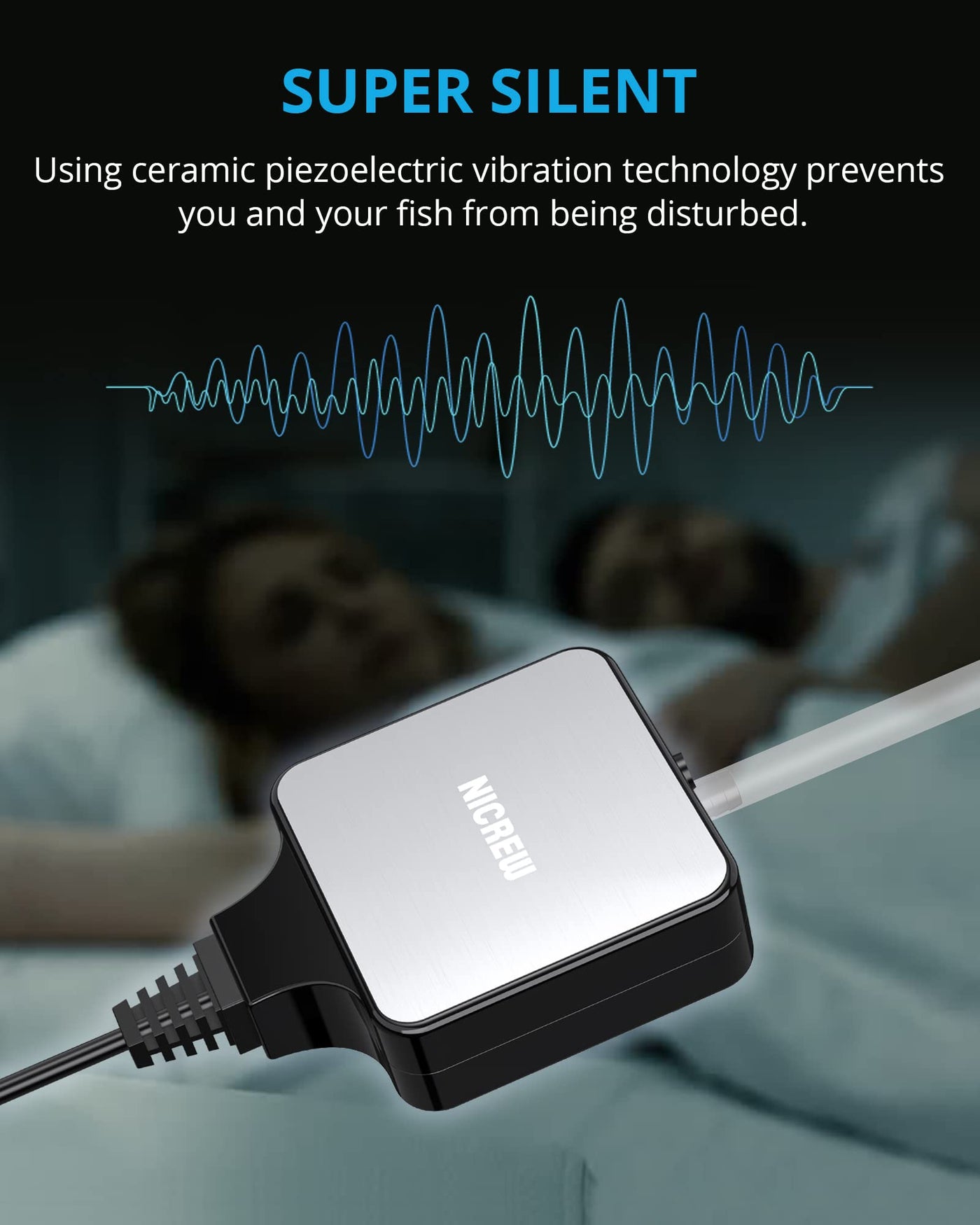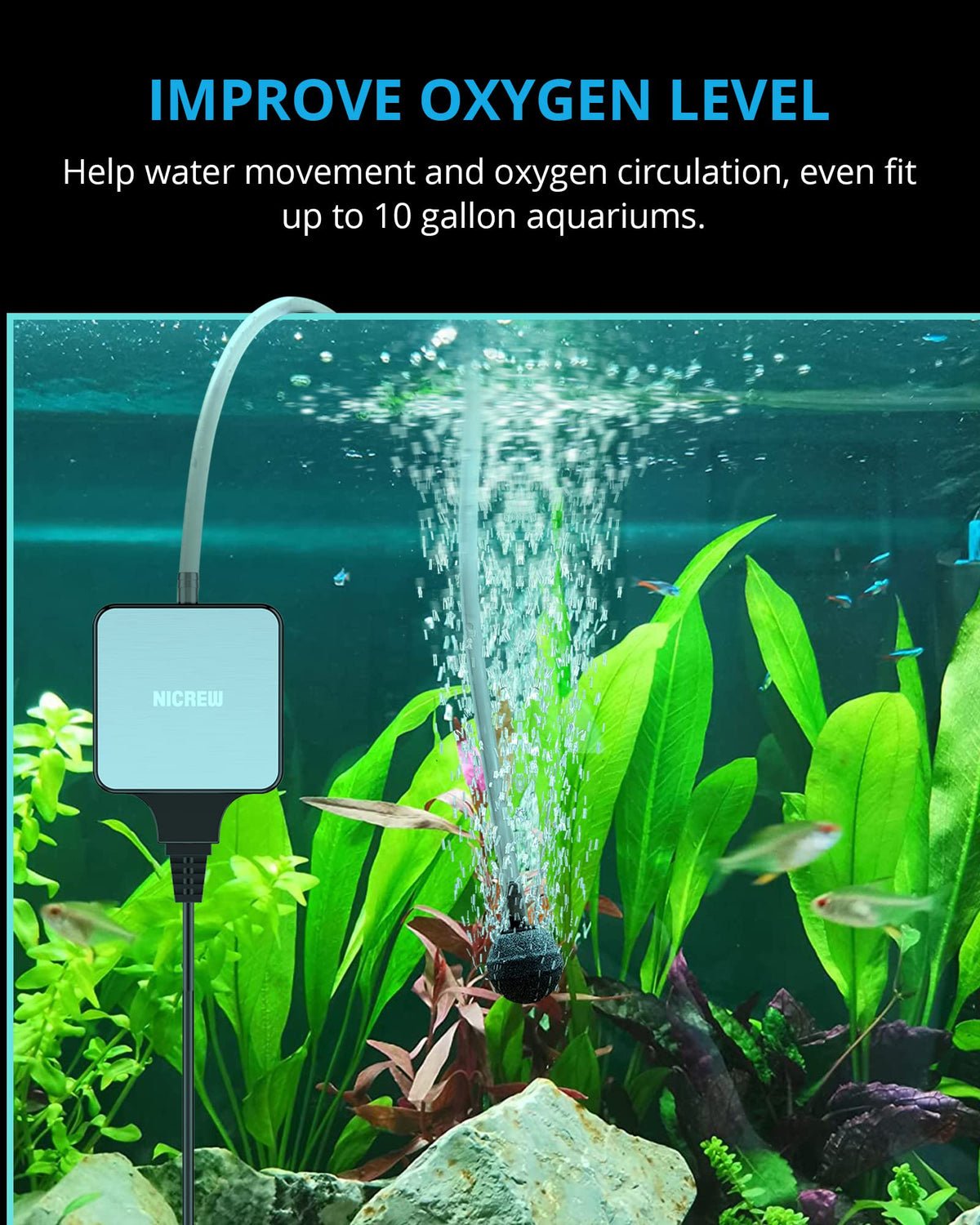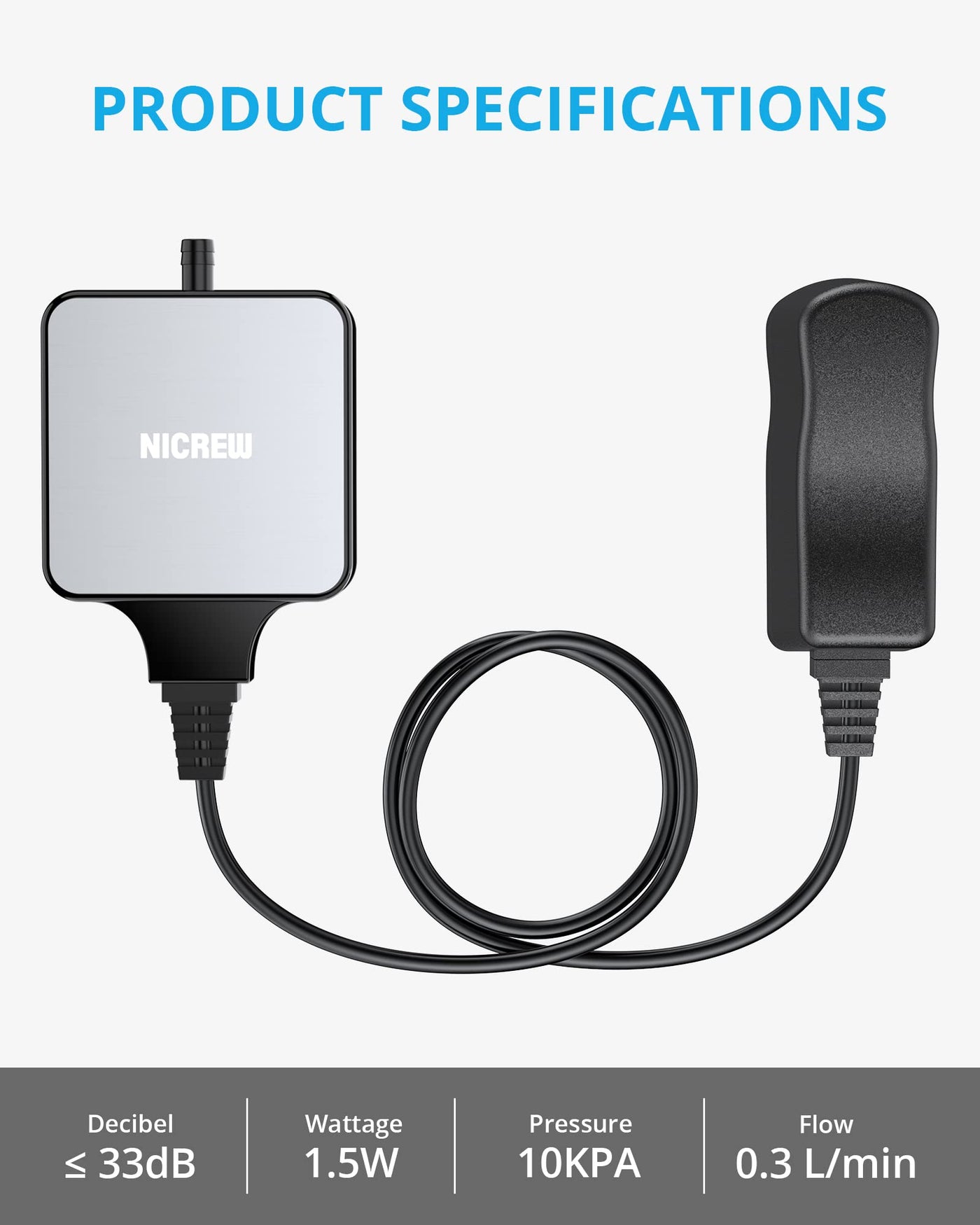 Nicrew Nano Silent Aquarium Air Pump, Corded Electric, Aquarium Aerator With Accessories For Up To 10 Gallon Fish Tank, Super Quiet, 0.3 L/Min, 1.5 Watts