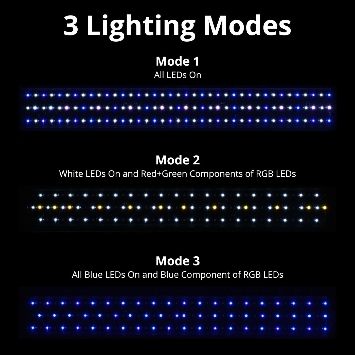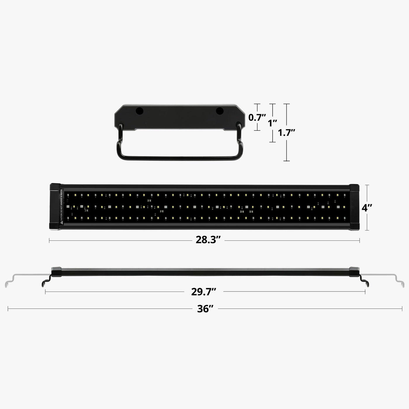 Specification LED Quantity: 57 White + 24 445nm Blue + 24 460nm Blue + 12 RGB Product Dimension : 28.3' L x 4'' W x 3/4'H Wattage: 32 W Adapter Power Output: 20V/1.8A