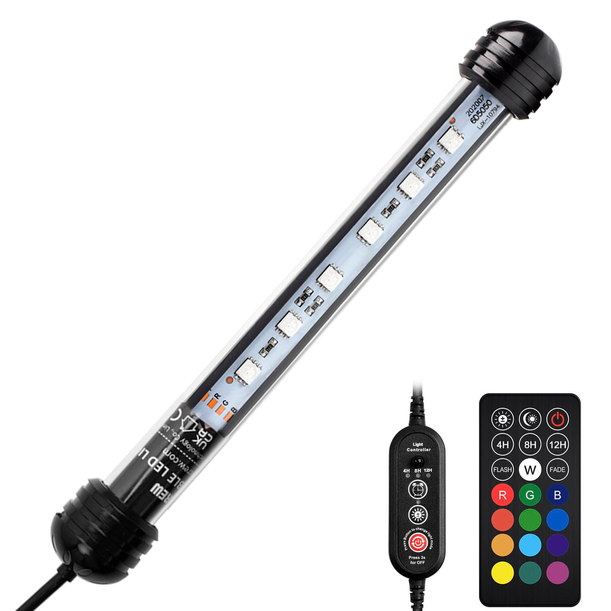 Nicrew Submersible Rgb Aquarium Light, Underwater Fish Tank Light With Timer, Multicolor Led Light With Remote Controller, 7 Inches