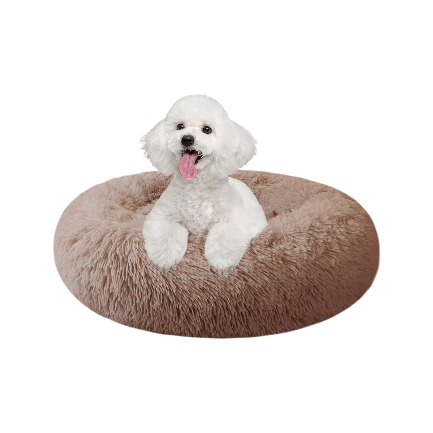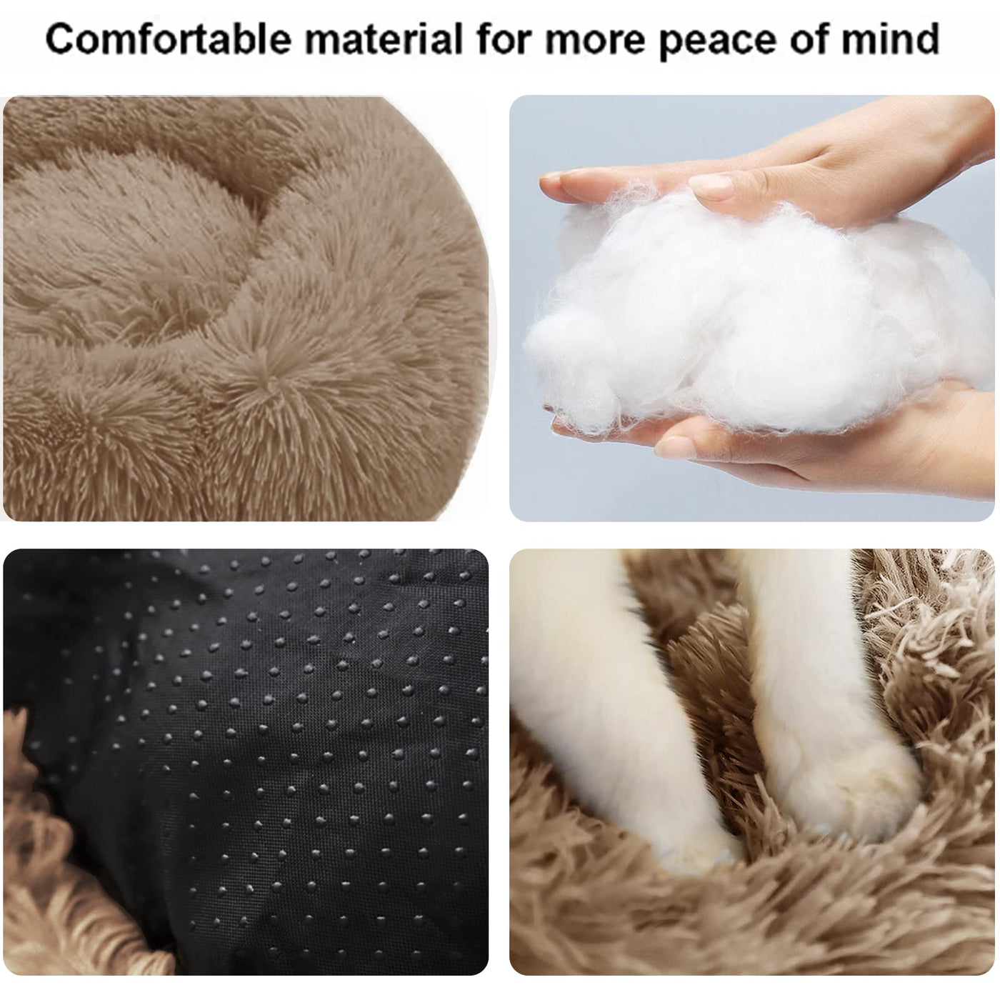 esign for cozy Sleep: cat beds or dog beds are the circular donut design The raised edges create a comfortable sense of security while providing head and neck support to help your kitten or puppy calm down faster get a more comfortable and stable sleep Super Soft Feeling: cat beds for indoor cats are made of soft plush fabrics Paired with premium pp cotton filling it increases the overall comfort of the cat bed Very suitable for cold winter ensuring your furry pets surrounded by comfort and warmth Easy to clean: cat beds for indoor cats we usually recommend hand washing to easy care for the cat beds If you choose machine wash just toss whole bed into the washing machine with gentle cycle And dry the pet bed in the dryer on low heat after washing Size choice: fluffy cat bed are a must have for every pet owner -This lightweight and portable pet bed for indoor pet is 20x20 for kitten or puppy up to 15lbs and 24x24 inch for cats or small dogs up to 25lbs Wide Range of Use: The round cat beds features an anti slip bottom which can prevent moving and shifting to ensure the safety of petsOur pet bed works great not only on your homeAs floor but also on the seat of your car It can be conveniently placed on the trunk or back seat as a travel bed for pets to rest and relax
