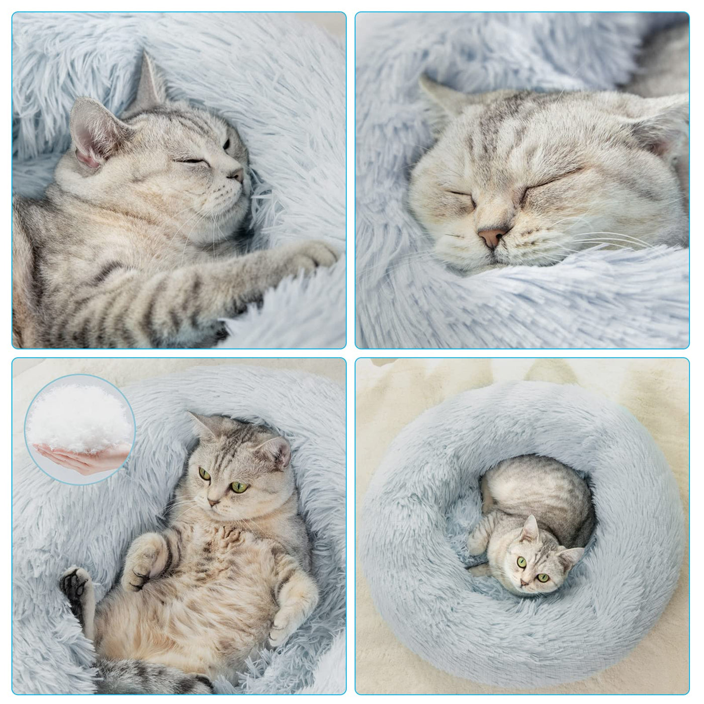 Cat beds or dog beds are donut design The raised edges create comfortable sense of security while providing head and neck support to help kitten or puppy calm down faster Get a more comfortable and stable sleep