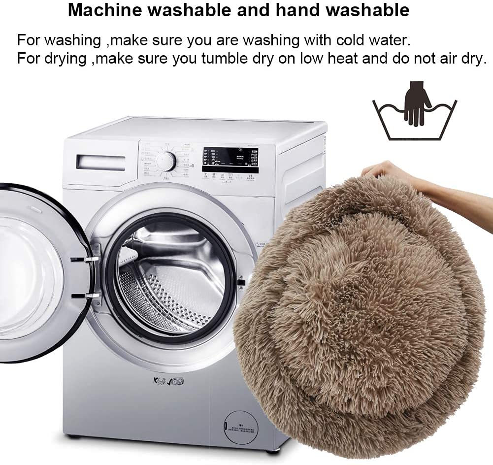 esign for cozy Sleep: cat beds or dog beds are the circular donut design The raised edges create a comfortable sense of security while providing head and neck support to help your kitten or puppy calm down faster get a more comfortable and stable sleep Super Soft Feeling: cat beds for indoor cats are made of soft plush fabrics Paired with premium pp cotton filling it increases the overall comfort of the cat bed Very suitable for cold winter ensuring your furry pets surrounded by comfort and warmth Easy to clean: cat beds for indoor cats we usually recommend hand washing to easy care for the cat beds If you choose machine wash just toss whole bed into the washing machine with gentle cycle And dry the pet bed in the dryer on low heat after washing Size choice: fluffy cat bed are a must have for every pet owner -This lightweight and portable pet bed for indoor pet is 20x20 for kitten or puppy up to 15lbs and 24x24 inch for cats or small dogs up to 25lbs Wide Range of Use: The round cat beds features an anti slip bottom which can prevent moving and shifting to ensure the safety of petsOur pet bed works great not only on your homeAs floor but also on the seat of your car It can be conveniently placed on the trunk or back seat as a travel bed for pets to rest and relax